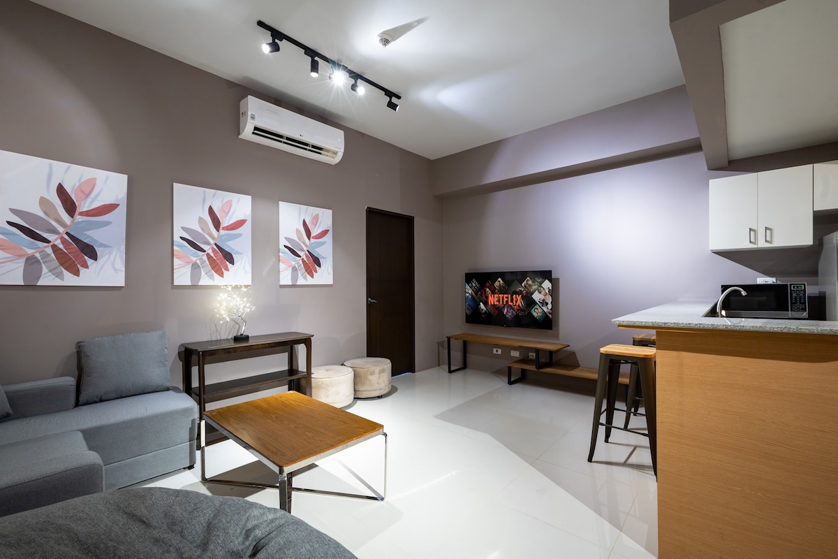 Наш блок идеально расположен в центре района Побласьон, ресторан и развлекательный район Макати, на 5-м этаже здания бутик-кондоминиума с круглосуточной охраной. Наш дом 1BR может похвастаться видами, современным интерьером середины века и удобствами, включая 55-дюймовый телевизор, Netflix, 300 Мбит/с, с полностью оборудованной кухней. Прогулка до близлежащих баров, повседневных ресторанов и изысканных ресторанов. Познакомьтесь с искусством и культурой! Идеальное место для пар, одиноких путешественников, тех, кто приехал в командировку, короткие поездки и отпуск!
