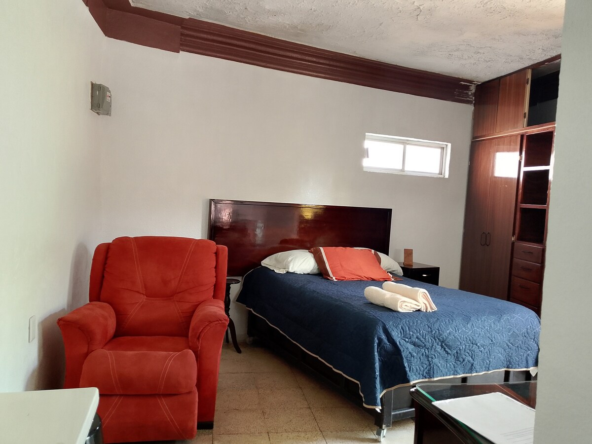 Ощутите повседневный опыт мексиканского города очень близко к пирамидам Теотиуакана. Идеально подходит для семей, небольших групп или пар. Удобный, чистый, безопасный, экономичный. Две спальни с двуспальной кроватью, ванная комната, гостиная, кухня, телевизор в комнате, Netflix, плита, мини-бар, микроволновая печь, Wi-Fi и парковочный ящик. Зеленые зоны и семейный сад. Идеально подходит для отдыха, забудьте городской шум и наслаждайтесь сельской местностью. Мы предлагаем услугу проката велосипедов