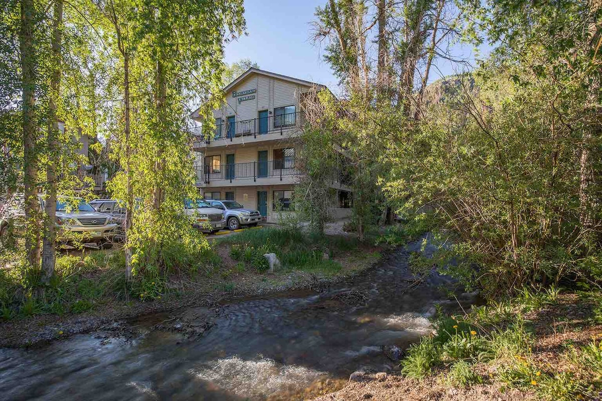 Это жилье находится в одном из лучших районов города. Новое джакузи/бассейн!! 10 минут пешком до входа на территорию фестиваля. 30 секунд пешком до тропы вдоль реки. 5 минут пешком до гондолы/склонов или центра города. Потрясающие виды из патио. До всех местных ресторанов, галерей, магазинов и музыкальных фестивалей можно быстро дойти пешком. Припаркуйте машину и гуляйте везде! Новая гидромассажная ванна открыта! Лицензия на ведение бизнеса №00651