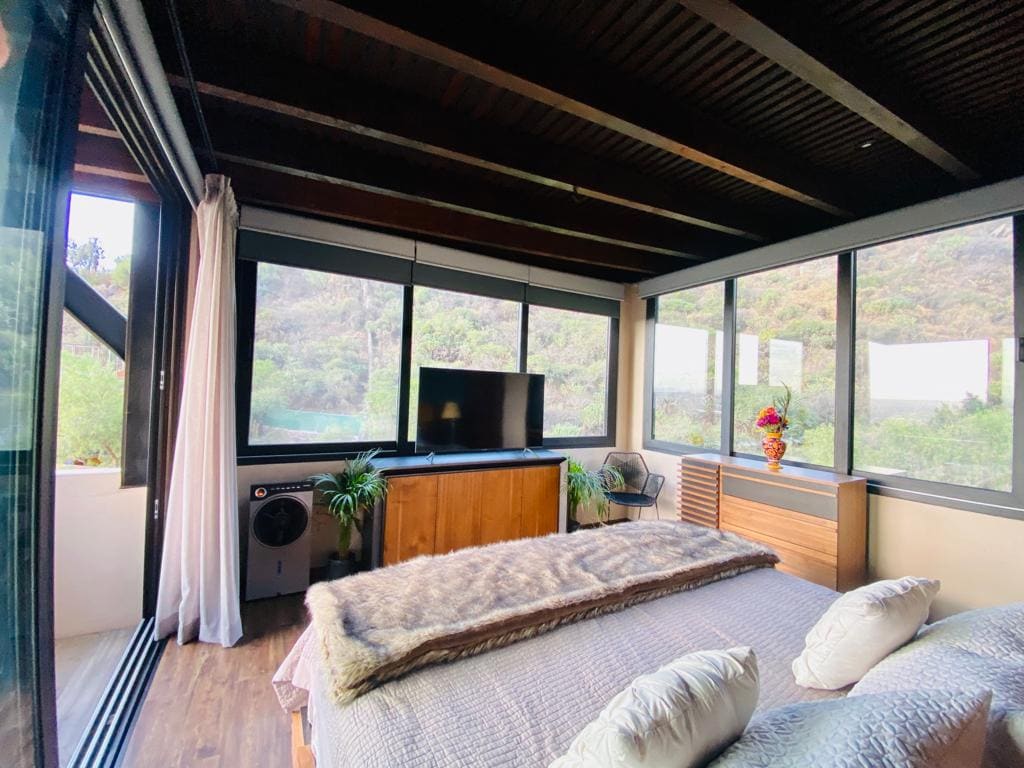 Отдохните в просторном и хорошо оборудованном доме с собственной крышей, террасой и джакузи. Всего в 10 минутах езды от исторического центра вы будете наслаждаться спокойной обстановкой — идеально подходит для отдыха после дня знакомства с Сан-Мигелем. Расположен в эксклюзивном жилом комплексе El Milagro с контролируемым доступом, круглосуточной охраной и общими удобствами, включая бассейн с подогревом, парную, тренажерный зал и корты для паддл-тенниса. Идеально подходит для групп, которые ценят комфорт, уединение и спокойный, приятный отдых.