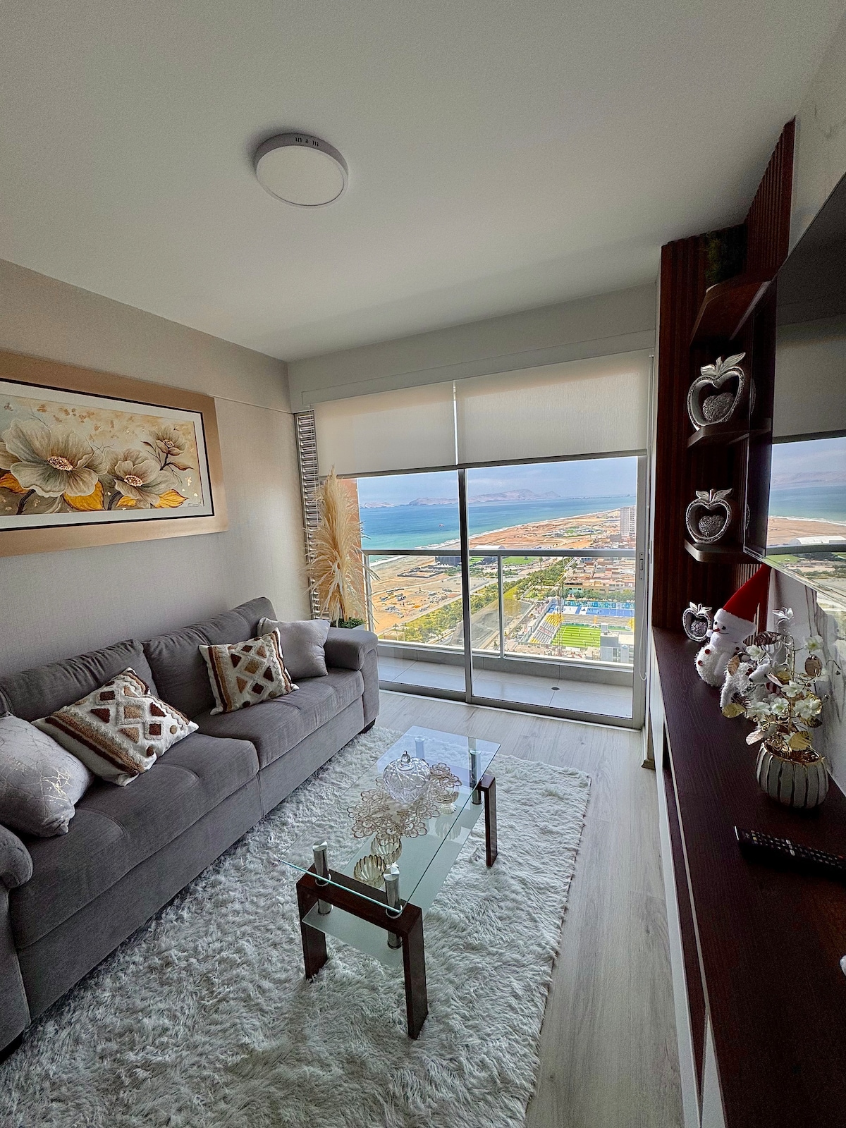 🔝Красивая квартира с видом на океан 🌊и остров Сан-Лоренсо 🏝. У нас есть бассейн, сауна, тренажерный зал и детские игры. У нас также есть круглосуточная охрана! Что вы найдете: - ГИГАНТСКИЙ 96-дюймовый 🎬телевизор в гостиной; — 🏊♀️Бассейн — 🚘Собственная парковка. — ✈️15 минут от аэропорта. — ⭐️15 минут от Мирафлорес. — 🛍5 минут до торгового центра Plaza San Miguel. — 🏟Напротив арены 1 Сан-Мигель. — 🪂Парапланеризм на пляже. - 🍖 Зона для гриля (спросите у хозяина) - Сауна (спросите нас).