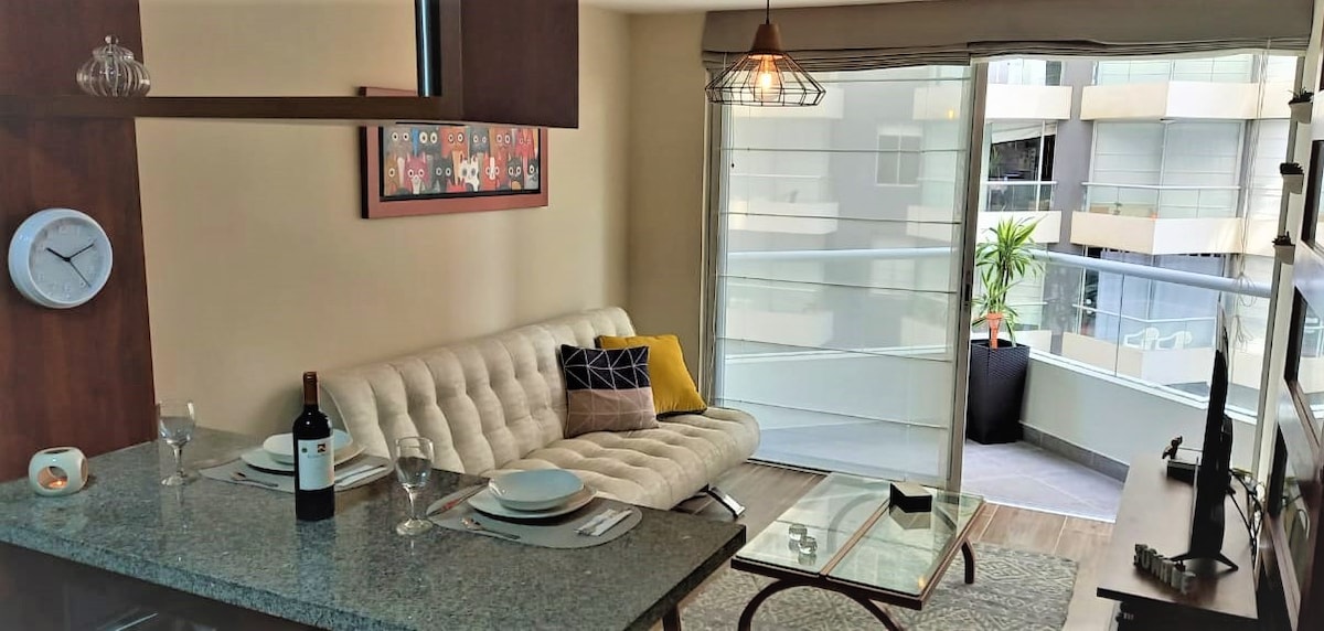 Исследуйте город Лима из нашей уютной мини-квартиры с эксклюзивным расположением между самыми туристическими районами и доступными проспектами Лимы. Захватывающий вид на море с террасы, в паре кварталов от пирса и очень близко к ресторанам, барам, туристическим местам и множеству развлечений. Это здание с круглосуточной стойкой регистрации, собственной парковкой и общими зонами, такими как открытый бассейн, тренажерный зал, прачечная.