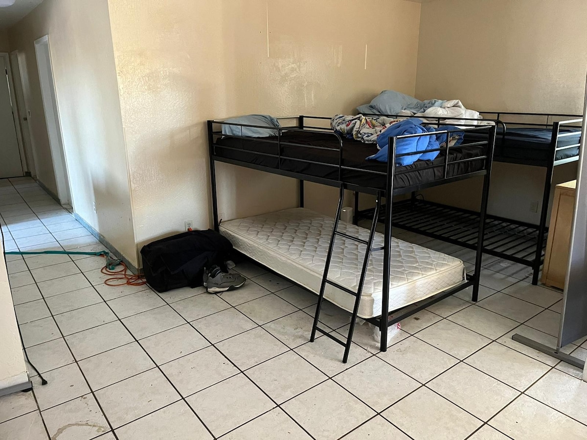 Наш дом 2-этажный/мы живем наверху в тихом районе Ричмонда/Эль-Соб. У нас есть квартира на уровне улицы с одной полностью оборудованной ванной комнатой, небольшой спальней с одной удобной двуспальной кроватью размера Queen size, телевизором, Wi-Fi, отдельной гостиной с мини-кухней, микроволновой печью, холодильником среднего размера и односпальной кроватью для третьего человека. Отдельный вход, полное уединение, простое прибытие и выезд! Две парковки автомобилей в передней части дома, тихая тупиковая улица, в одном квартале от средней школы De-Anza, церковь...,
