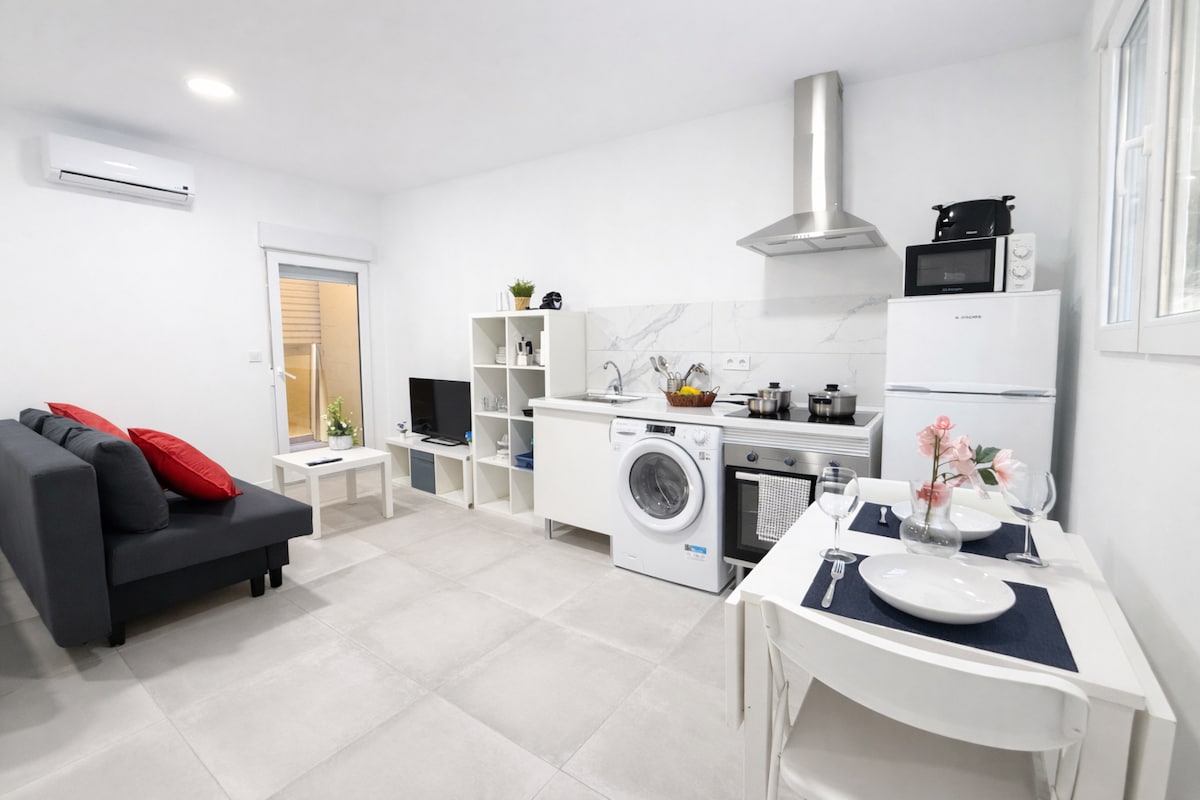 Квартира Vine расположена в центре Мадрида, недалеко от Гран-Виа, на тихой улице в новом здании с лифтом. Она вдохновлена природой, светлая и современная, имеет Wi-Fi, полностью оборудована и находится очень близко к ресторанам, тапас, метро, магазинам и галереям. Лучше всего подходит для пар, пар или пар с ребенком! Животные приглашаются счастливо!!! Квартира находится в новом буллидинге, с лифтом! Современный дизайн, с большим количеством зелени, оформленный на свое название, Вайн. Огромное окно на всю всю квартиру с видом на красивый частный сад. Квартира состоит из спальни с двуспальной кроватью, гостиной с односпальным раскладным диваном, кухни и ванной комнаты. К услугам гостей полностью оборудованный Wi-Fi, включая стиральную машину, телевизор, кондиционер и кофеварку Nespresso - все готово для вашего комфорта и удовольствия! Квартира-студия с открытым пространством и полностью в вашем распоряжении, чтобы насладиться отдыхом! В квартире нет зон, которыми вы не можете пользоваться или получить доступ! Мы любим принимать гостей, но уважаем частную жизнь наших гостей! Мы работаем для вас по желанию! Расположена недалеко от Гран-Виа в оживленном районе Маласана с большим ассортиментом аутентичных кафе, тапас и баров. Огромная Zara Primark & Mango находится в нескольких минутах ходьбы. Лучшие места Мадрида, такие как Королевский дворец, Пуэрта-дель-Соль и музеи, находятся в нескольких минутах ходьбы. Центральная станция метро «Гран-Виа» в 2 минутах ходьбы от апартаментов. Оттуда вы можете сесть на метро до любого места Мадрида, а также до всех железнодорожных станций, которые доставят вас из Мадрида в остальную часть Испании. Если вы приезжаете на автомобиле, большая парковка расположена по адресу Barco 1, Мадрид, всего в минуте ходьбы от квартиры. Рядом есть станция проката велосипедов. Вас ждет набор воды, газировки, молока, кофе, чая и сладостей :-)