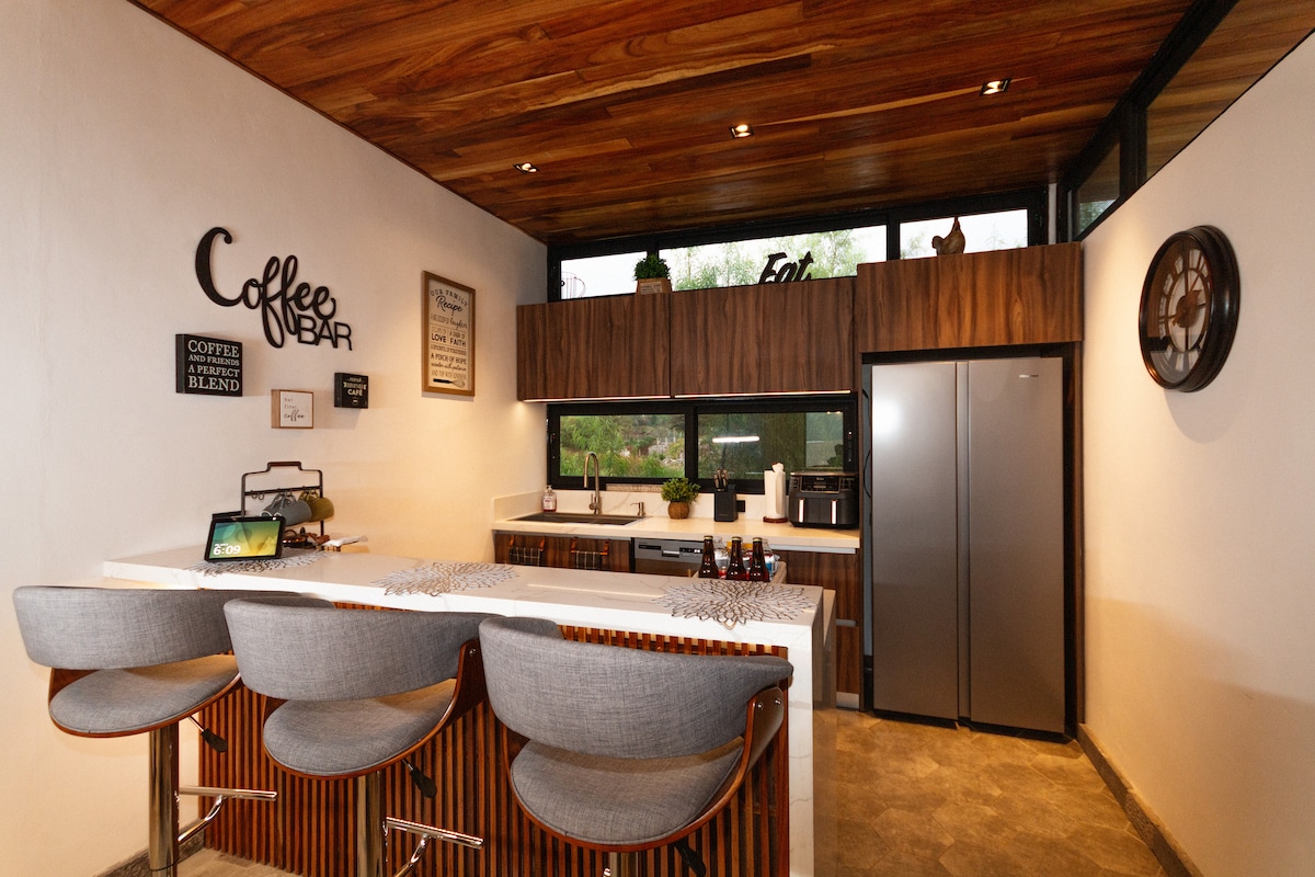 Очень уникальный и современный роскошный дом в Гватемальском нагорье с ощущением плавания в небе (1700 м). - Особенности беспрепятственного соединения Starlink с 24-часовым непрерывным электричеством (литий/солнечная энергия). - Все окна полностью открываются, чтобы встретить захватывающий вид на 5 вулканов и «бесконечное озеро» постоянно меняющейся «живописи». - Фильтрованная родниковая вода на кране. - Гидромассажная ванна в ванной для закрытой или открытой двери. - консольная гамаковая терраса площадью 12 кв. м для наблюдения за звездами и отдыха.