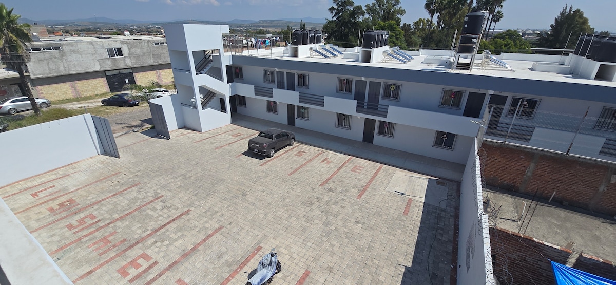 Departamento en Fraccionamiento Privado Azul Turquesa, ubicado en Santa Ana Pacueco, Guanajuato, a solo 5 minutos del Centro de La Piedad, Michoacán. Cuenta con: 2 Recámaras matrimoniales contiguas con vestidor. Para 4 Huéspedes. 1 baño completo y ½ baño. Sala y área de desestrés. Cocineta con barra y Asador de Gas. Cochera Privada con Porton Electrico. Acceso Directo con Chapa Electrica Roof Garden Ideal para descansar en un espacio seguro, moderno y con excelente ubicación.