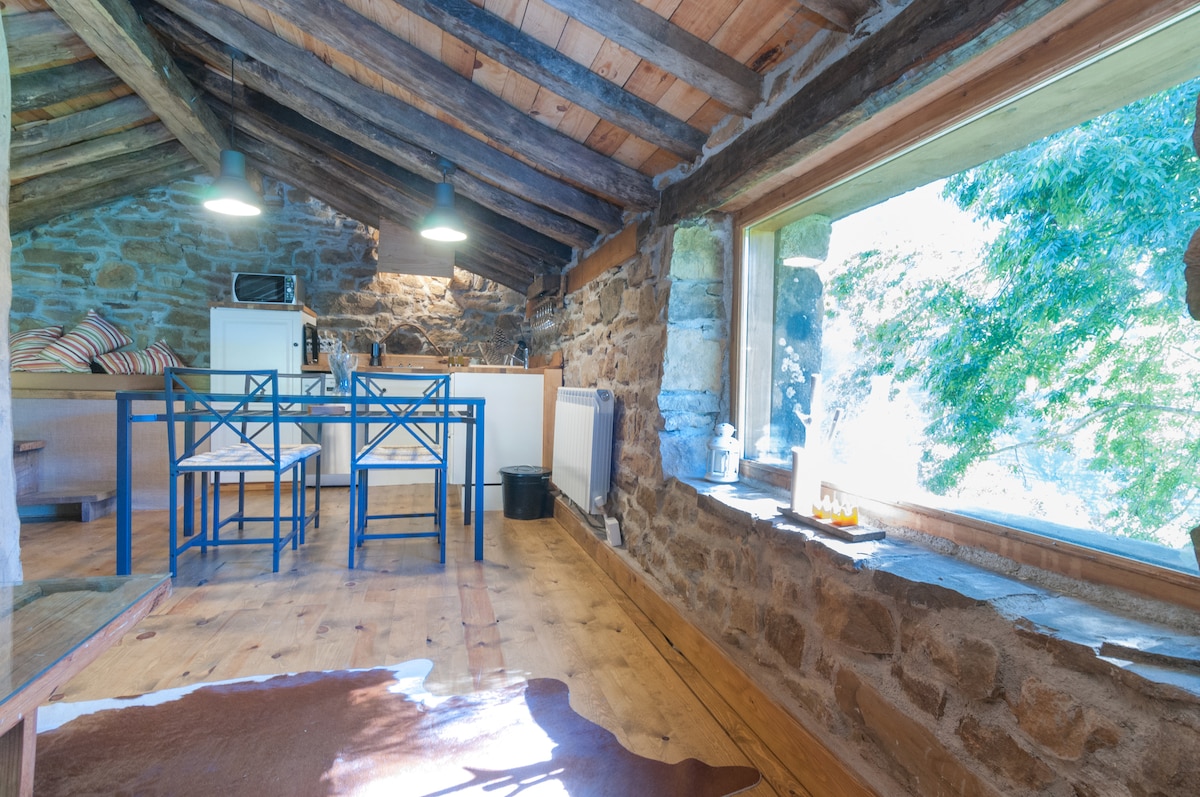 Сельский коттедж из камня и шиферной крыши, оригинальный из района с непревзойденным расположением и видом. К услугам гостей частный дубовый и каштановый лес с собственным столом для пикника и обширная ферма для прогулок в несравненной обстановке, 2 этажа, 3 комнаты, одна из них с диваном и телевизором, барбекю - открытый камин, водный колодец, крытое крыльцо, терраса - балкон, смотровая площадка - каменная терраса, подвесная на склоне холма с потрясающим видом на долину и горы, а также весь дом.