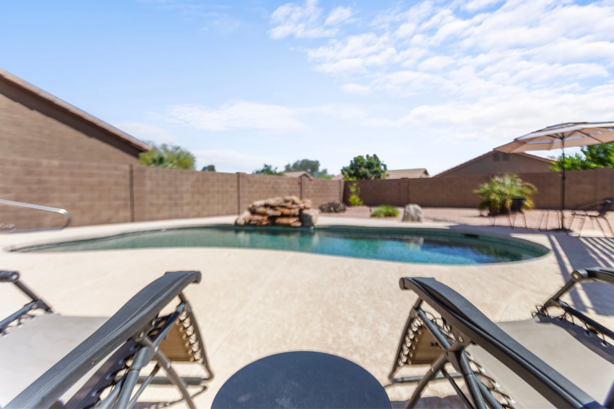 Добро пожаловать в Desert Diamond Escape! Ваш собственный кусочек рая в долине Сан-Тан, штат Аризона! Наша безупречно меблированная вилла площадью 1500 квадратных футов с тремя уютными спальнями и двумя роскошными ванными комнатами. Расслабьтесь в бассейне с соленой водой емкостью 12 000 галлонов и успокаивающим водопадом. Отдохните в нашем оазисе на открытом воздухе с очаровательной беседкой, барбекю, лаундж-сетами, зеленью. Полностью укомплектованная кухня, 4 телевизора, оптоволоконный Интернет. Не пропустите пожалуйста! - Отопление бассейна - это дополнительная плата.