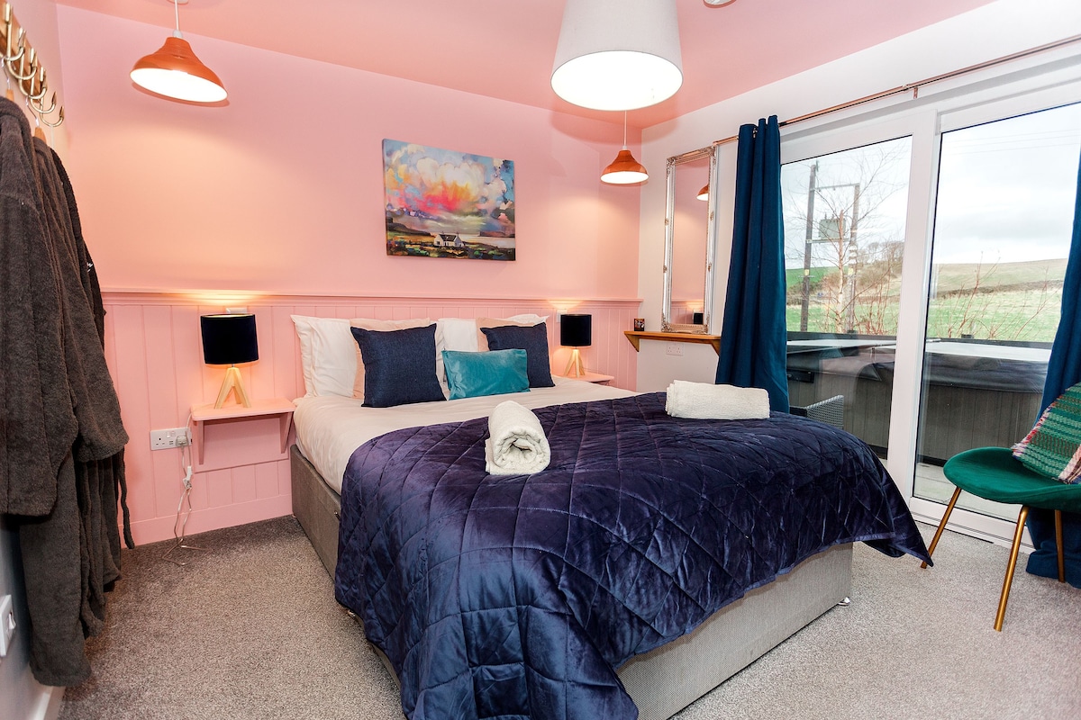 Это специально построенное деревянное шале с кухней открытой планировки и обеденной зоной с дровяной печью и двумя просторными спальнями с двуспальными кроватями размера Super King size, которые можно превратить в две односпальные кровати. Все комнаты выходят на частное патио со столиками на открытом воздухе, чтобы вы могли расслабиться и насладиться захватывающими видами и закатами над национальным живописным районом Флот-Вэлли. Затем, как только солнце садится, насладитесь потрясающим ночным небом Galloway Dark Sky Park. Использование сауны на дровах.