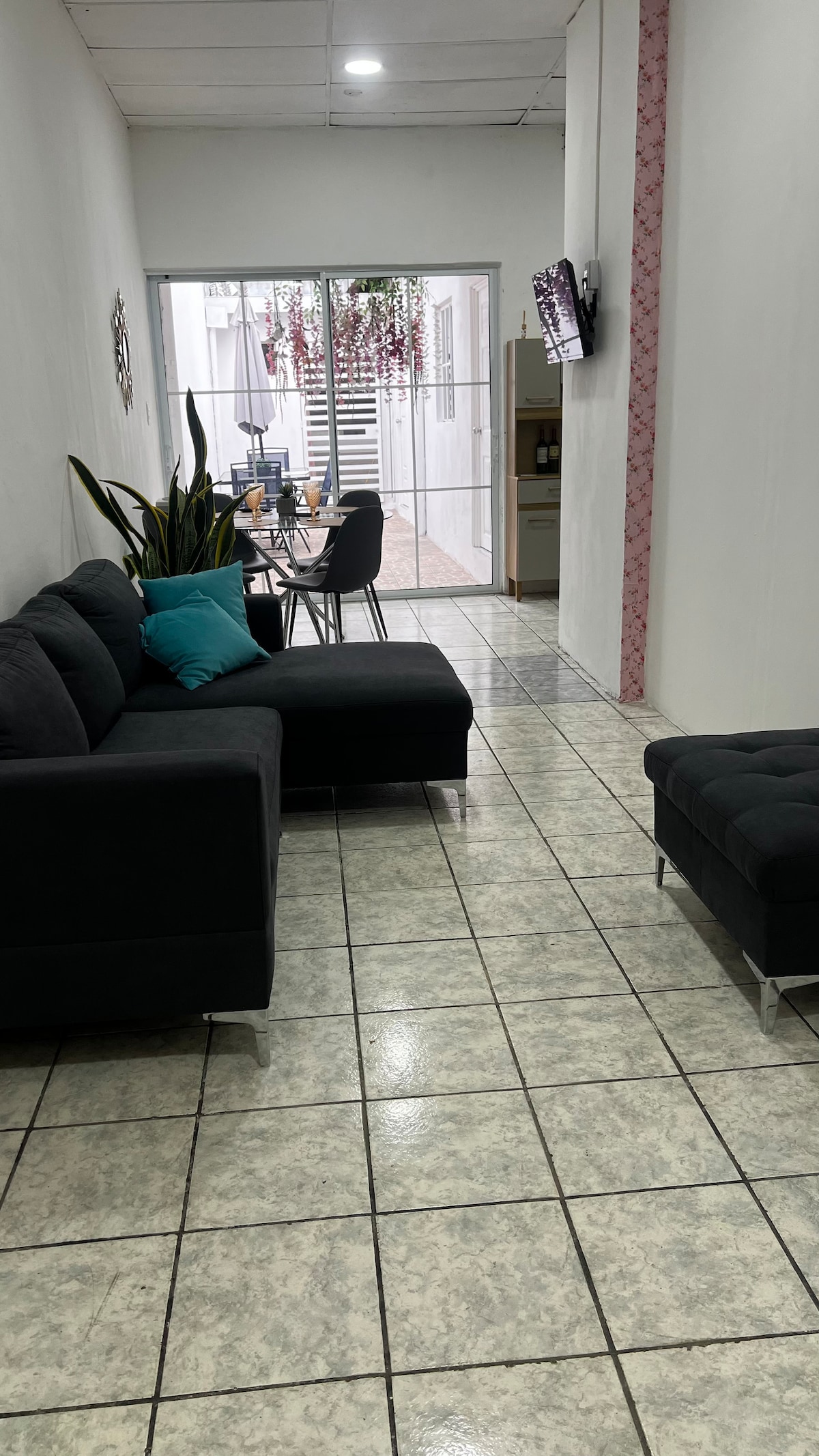 Это полностью независимая квартира с просторной комнатой, кухней и задним двором. Собственная ванная комната. Кондиционер в гостиной и спальне. В комнате есть кровать на двух человек и двухъярусная кровать на трех человек. В комнате есть диван-кровать. Жилье расположено в 5 минутах от Metrocentro и ресторана Santa Ana.