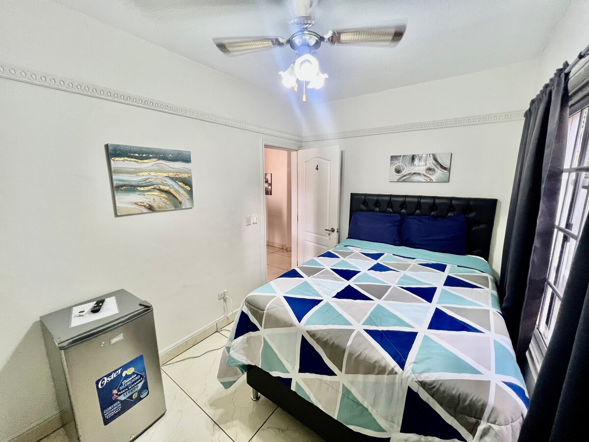 El estudio está muy bien equipado con todo lo necesario ideal para 2 personas que buscan un lugar tranquilo en buena ubicación Cuenta con una pequeña cocina, cama Queen size, área de trabajo, TV, baño privado. El estudio está en la segunda planta. 🎯▶️En Este Momento la Piscina se encuentra en Mantenimiento, por lo cual no está disponible 🚫 No es permitido las visitas. 👮Solicitamos imagen del ID 🪪 de acompañante. ⚡NO cuenta con generador eléctrico. Tomar en cuenta todos los reglamento.