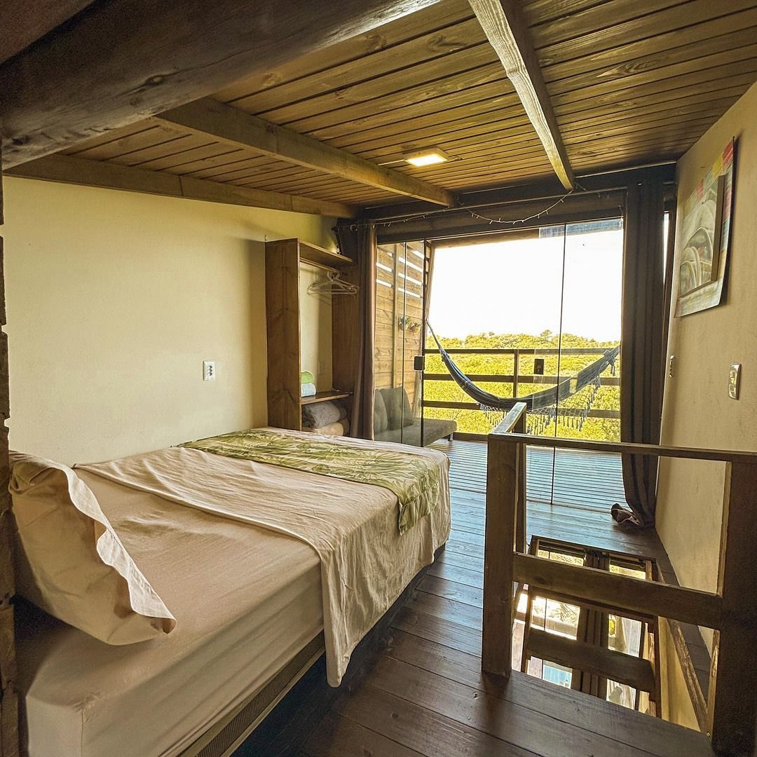 Бунгало на общей территории в 80 метрах от лагуны - идеальное место для кайтсерфинга. Отдельный вход и уединение ! Регион окружен природой и в 15 минутах ходьбы от центра Лагоа. 1 минута пешком до автобусной остановки. Бунгало состоит из наружной крытой террасы с обеденным столом, оборудованной кухни, ванной с туалетом и большой комнатой с рабочей зоной и балконом. Удобное место для отдыха, наслаждения жизнью и пением птиц! Идеально подходит для пар, одиночек и удаленной работы !