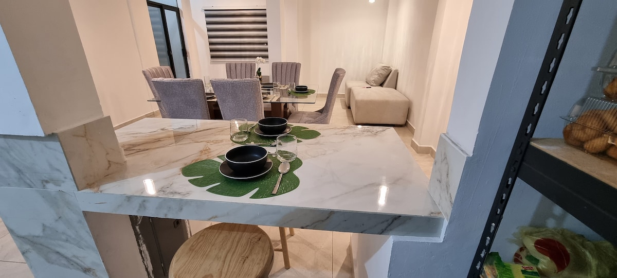 Полностью оборудованная квартира, идеально подходящая для приятного отдыха со всеми услугами, горячей водой, танако, кондиционером(холодным/теплым), кухонной утварью, техникой, обслуживанием в качестве платного телевизора (Totalplay), интернетом. Рядом с магазинами, магазинами, легким доступом. У нас также есть крытый гараж (длиной 4,10 метра) с электрическими воротами для автомобиля среднего размера.