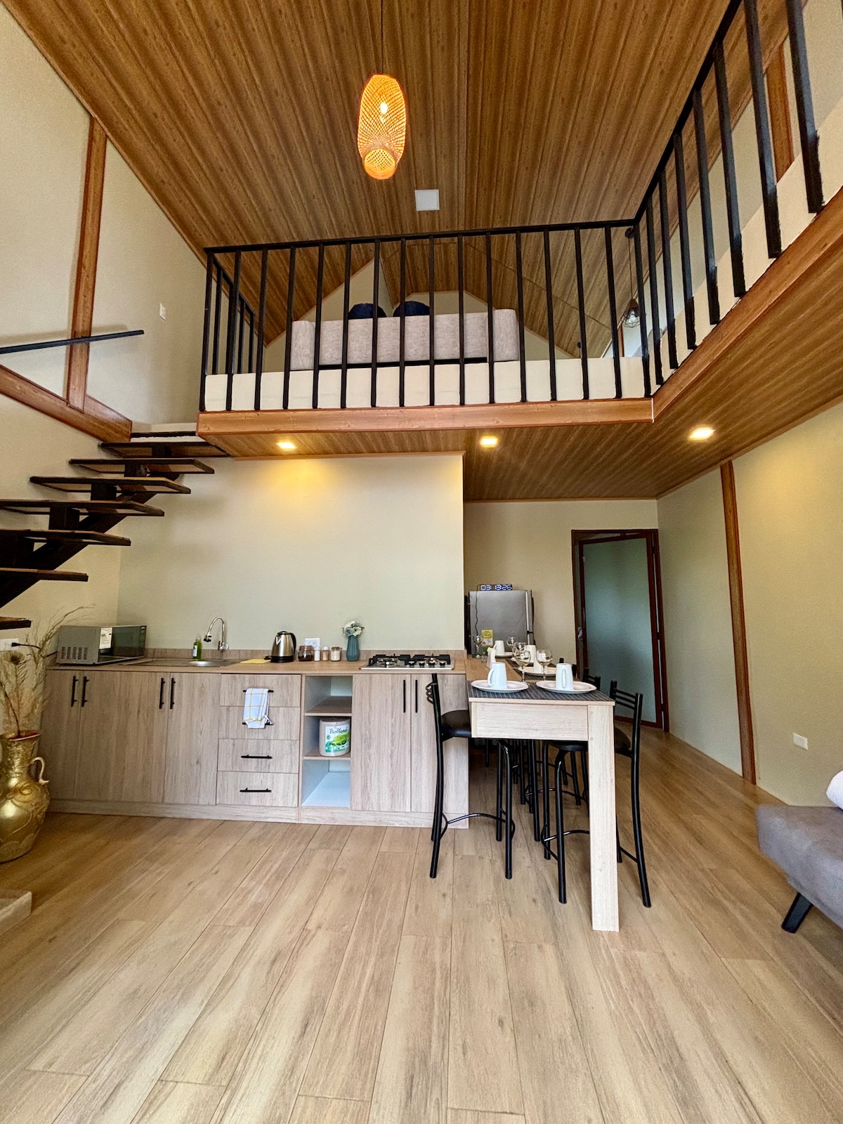 Расслабьтесь и наслаждайтесь природой, сбегите в место с захватывающим видом на Пуйо, смешанная конструкция с деревом, душ с горячей водой, отдельная ванная комната (полотенце, мыло, шампунь), гараж, кухня, кабинет с тренажерным залом, терраса и балкон, рядом с центром Пуйо и в контакте с природой. Дом просторный и расположен рядом с Akanni Glamping, идеально подходит для посещения коренных общин. У нас есть электронные счета.