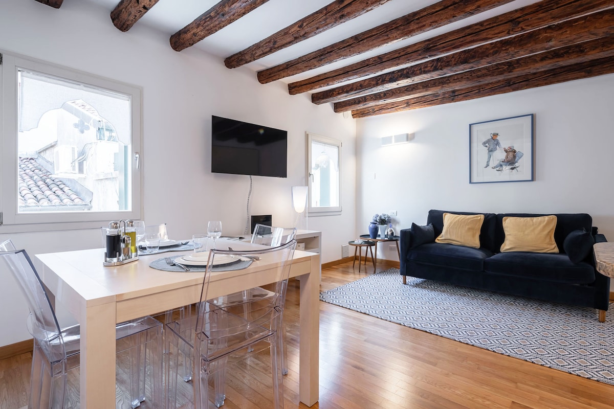 Большая квартира расположена в центре Венеции. Вид на канал сделает ваше пребывание уникальным. Элегантная отделка, большая гостиная и оборудованная кухня позволят вам наслаждаться пространством и жить как настоящий венецианский. В нескольких шагах вы найдете свежие фруктовые и овощные лавки, супермаркет для любых нужд. Квартира также идеально подходит для длительного проживания, так как в ней есть два дивана и зона для работы.