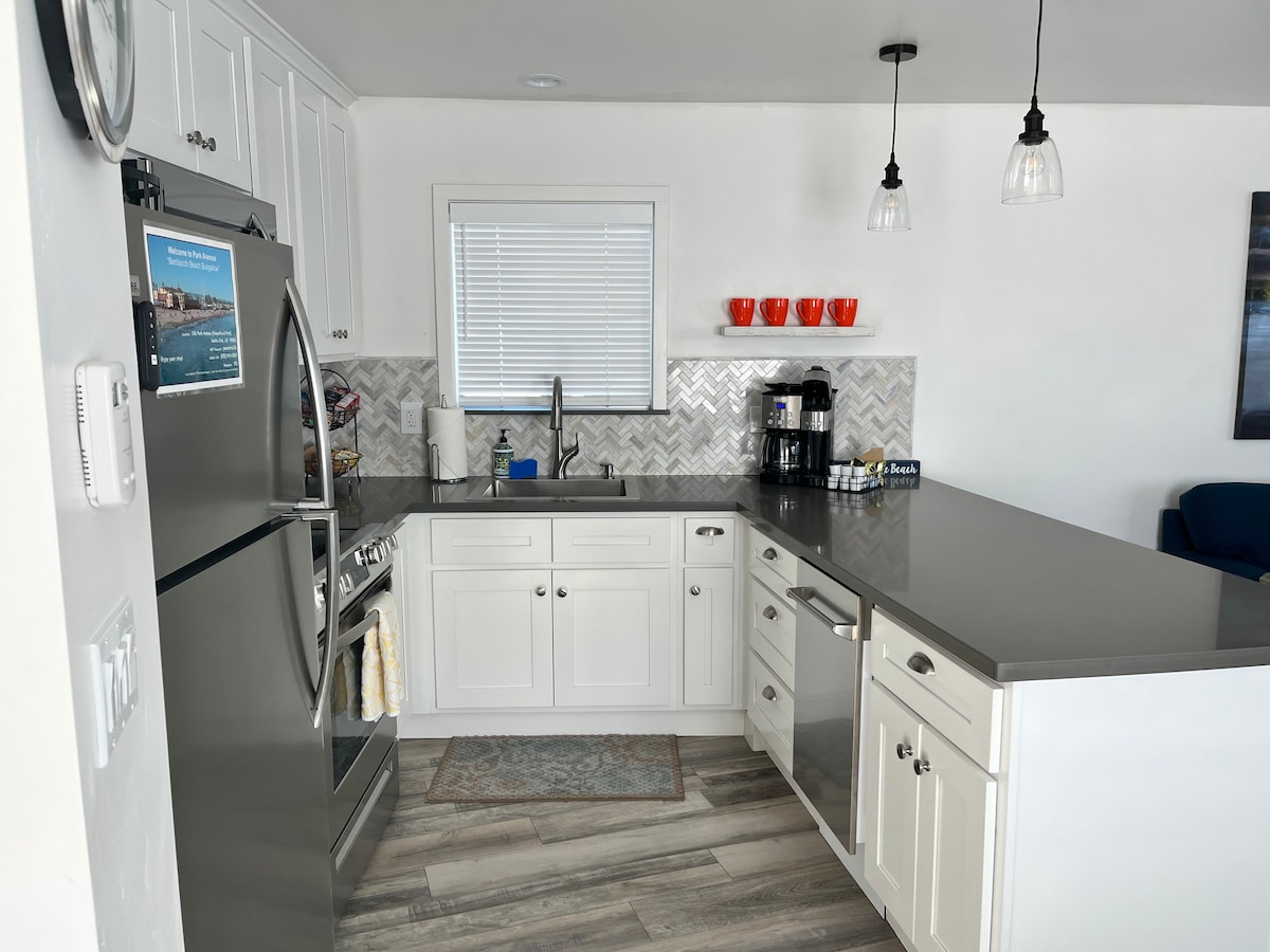 Наш отель Seabright Beach находится в нашей семье уже более 50 лет. Недавняя реконструкция обновляет пространство с нашей целью сделать его особенно комфортным и легким, отступление, где вы сможете расслабиться после дня приключений, катания на Большой Медведице, дегустации вина/пива или пляжного веселья. Спать в удобной двуспальной кровати размера King size в комнате с затемняющими оконными покрытиями. Диван с выдвижной кроватью размера Queen size. Кроме того, у нас есть раскладная кровать в шкафу спальни.