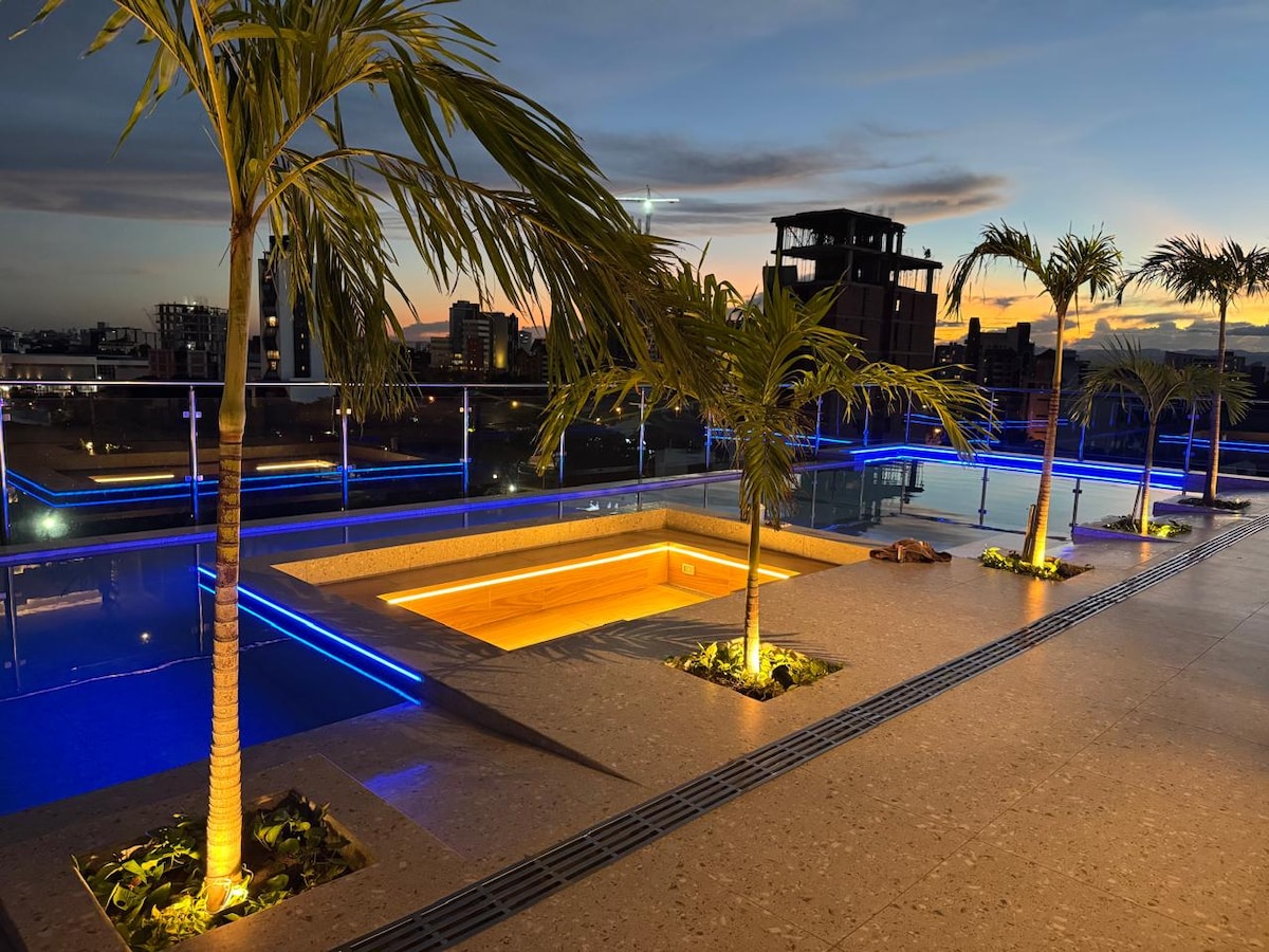 Живите в самом полном месте в одном из лучших в городе, в тихом месте всего в нескольких шагах от одного из самых современных торговых центров в торговом центре Ventura, в минуте ходьбы от супермаркетов, аптек, ресторанов и т. д. Av. Salvador/Calle G, Equipetrol. У нас есть: - Кровать размера Queen size Диван-кровать - Роскошная ванная комната - столовая - оборудованная кухня - Wi-Fi; - Smart TV - Рабочий стол - кондиционер. Вы сможете насладиться: - Панорамным бассейном. - Churrasquera - Cowork with WiFi - терраса - прачечная.