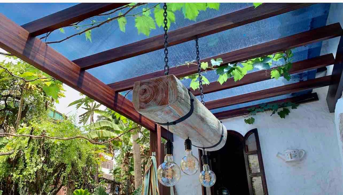 Эта недавно отремонтированная, полностью лицензированная квартира Airbnb расположена на двух уровнях с отдельным входом на тихой улице. Внизу есть садовый дворик, уютная гостиная с рабочей зоной, спальня с кроватью размера King size, кондиционером и ванной комнатой. На верхнем этаже есть светлая, полностью оборудованная кухня с барной стойкой и балконом для обеда на открытом воздухе с видом на сад. Обратите внимание, что это законная аренда, лицензированная Министерством туризма.