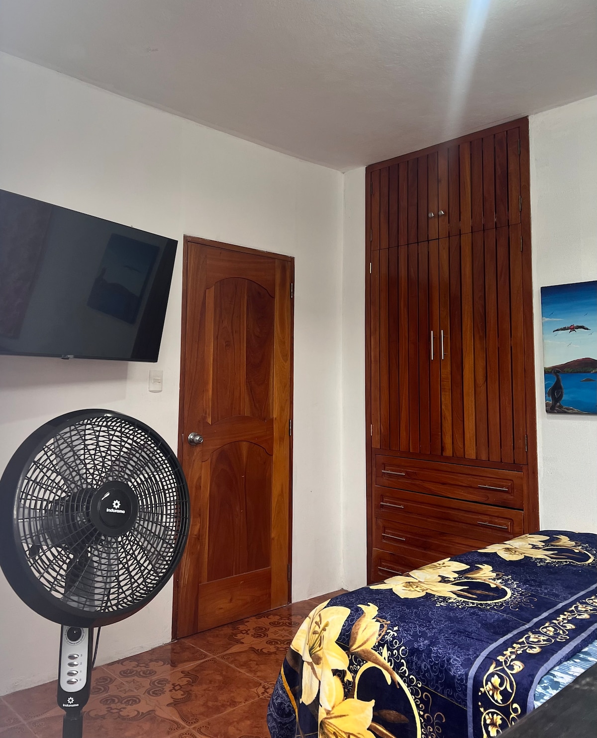 Это прекрасная зарегистрированная собственность с прекрасными видами и прекрасным свежим океанским бризом. Наша квартира расположена в двух кварталах от проспекта Чарльза Дарвина. Гости могут насладиться прогулкой до главных достопримечательностей, таких как исследовательская станция имени Чарльза Дарвина и пляж, отличные рестораны, кафе, магазины, дайвинг-центры, туроператоры и многое другое. Отличный вариант для гостей, которым нужна гибкость, комфорт и хорошее соотношение цены и качества. В спальне есть кондиционер, однако в гостиной есть только приятный морской бриз.