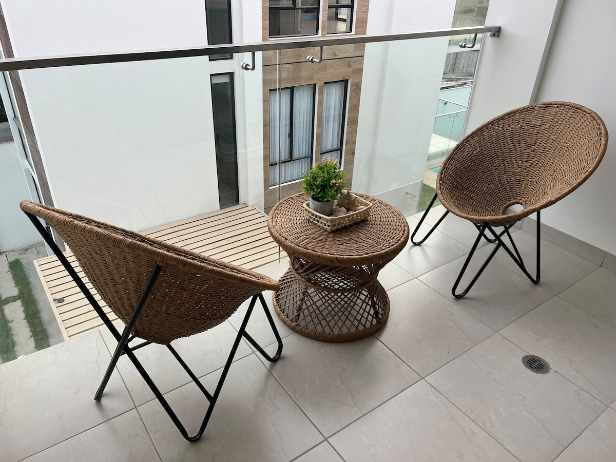 Добро пожаловать в наш яркий частный лофт в Олоне, Эквадор! Всего в 800 метрах от пляжа, наш отель предлагает три частные квартиры с отдельными ванными комнатами и полностью оборудованными кухнями. Наслаждайтесь общим бассейном и расслабьтесь в нашем любимом лофте. К услугам гостей двуспальная кровать размера Queen size, собственная ванная и полностью оборудованная кухня с дополнительным местным кофе. Оставайтесь в комфорте: кондиционер, Wi-Fi и самостоятельное прибытие. Исследуйте близлежащие пляжи и погрузитесь в непринужденный прибрежный образ жизни. Забронируйте проживание сегодня!