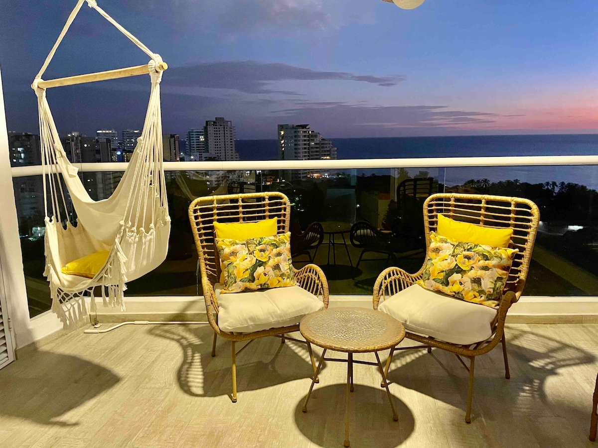 🏖️ Apartment with a private 🛁 jacuzzi, terrace with a 🪢 hammock, 🍳 fully equipped kitchen (air fryer, coffee maker, blender), 🏖️ beach kit included and access to 🏊♂️ 3 swimming pools. Just 100 m from the beach and 10 min from the airport ✈️. Includes 🧴 amenities and 🧼 bath and beach towels. Building features 🏋️♀️ gym, 🛒 mini market, 🚗 free parking, 💇♀️ hair salon, Turkish bath and sauna (extra cost). Close to 🛍️ supermarkets and restaurants. IDEAL PARA ESTADÍAS CORTAS Y LARGAS.
