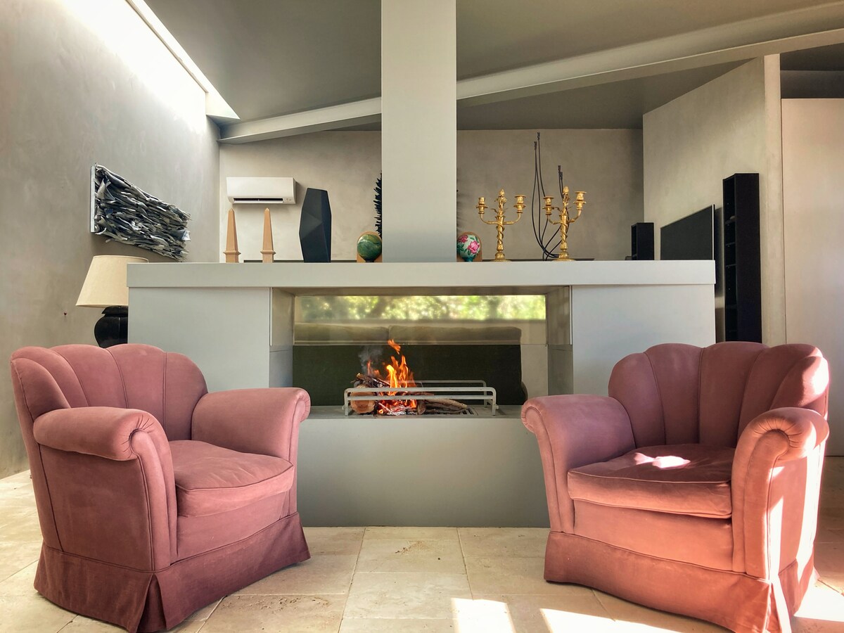 Отдохните и расслабьтесь в стильном месте. По следам первого появился второй люкс LA NUIT D'AMÉLIE... полностью уединенный люкс площадью 120 квадратных метров с: Жилая зона: полностью оборудованная кухня открытой планировки с 65-дюймовым LED-телевизором, гостиная, биоэтаноловый камин, кондиционер и ванная комната. Спальная зона: двуспальная кровать, 90-дюймовый телевизор, кондиционер, главная ванная комната с открытым душем и балкон. Оздоровительный центр с финской сауной, джакузи и захватывающим видом на Понтийскую равнину.