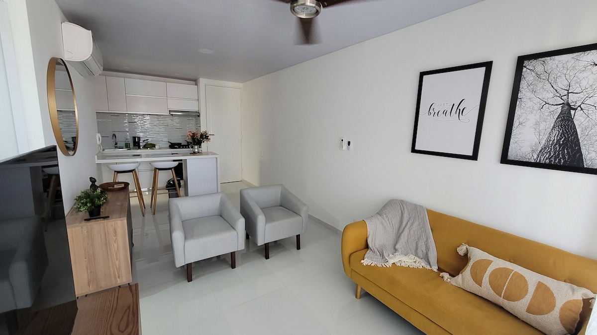 Наслаждайтесь этой тихой, светлой, расположенной в центре квартирой с 2 спальнями и 2 ванными комнатами, гостиной, телевизионной комнатой, баром, кухней, окном с видом на скалы и прачечной со стиральной машиной в красивом жилом комплексе и частной парковкой. Рядом с торговым центром Alfaguara, супермаркетами Éxito, Caribe и Gran Colombia, стадионом Cacique Jamundí и Coliseo, с множеством ресторанов, рек и бассейнов в Джамунди, Миравалле и его окрестностях.