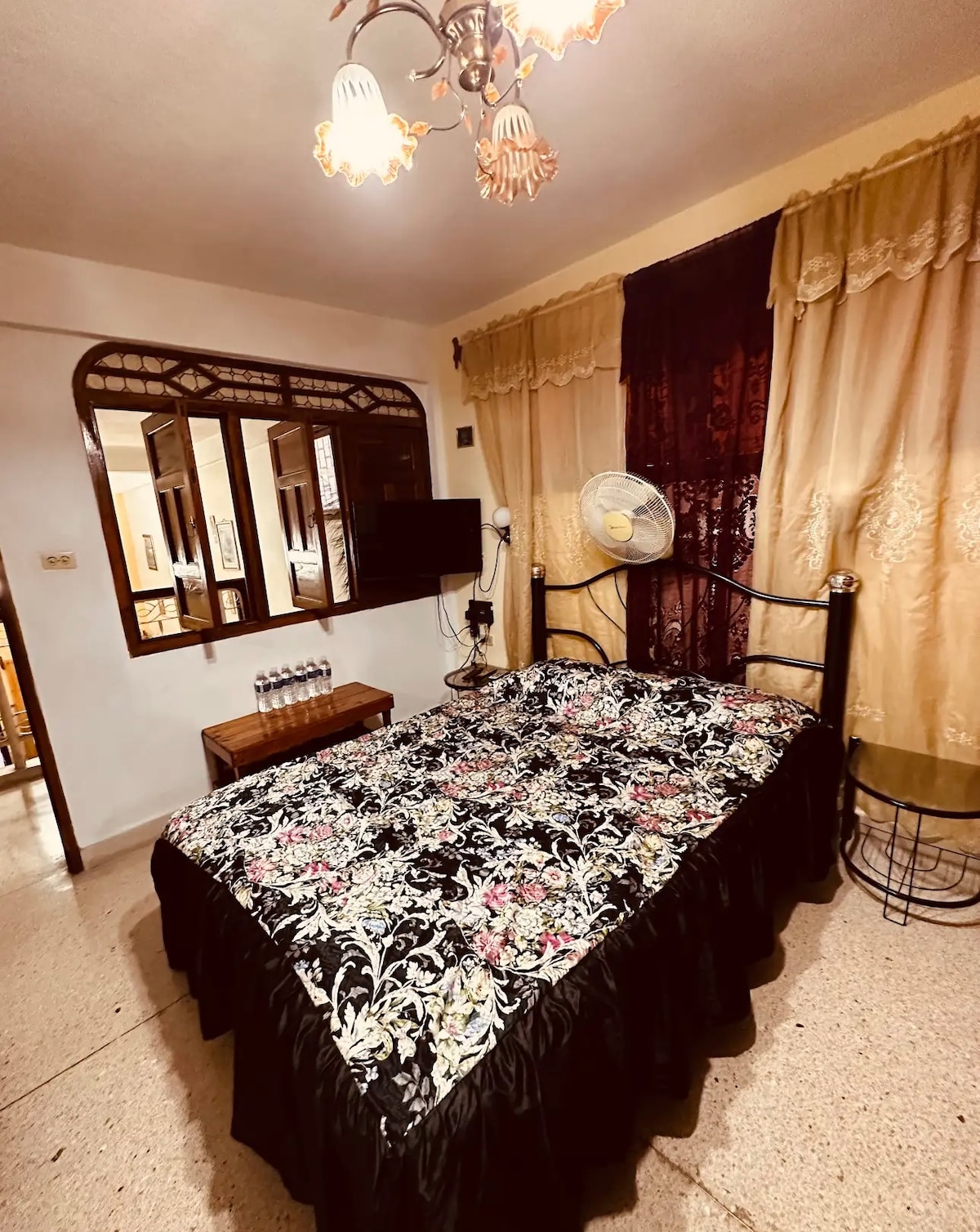 Наслаждайтесь простотой этого тихого и центрального жилья. Современный дом расположен в центре города Сантьяго-де-Куба, очень близко к автобусному и железнодорожному вокзалам. Это отдельный дом с двумя спальнями (двуспальной и двухместной), в которых есть все удобства: гостиная, столовая, кухня с мебелью, патио и гараж для мотоцикла. Кроме того, есть холодильник и телевизор. Вы можете взять с собой портативный электрический генератор с батареями Ecoflow на случай отключения электричества.