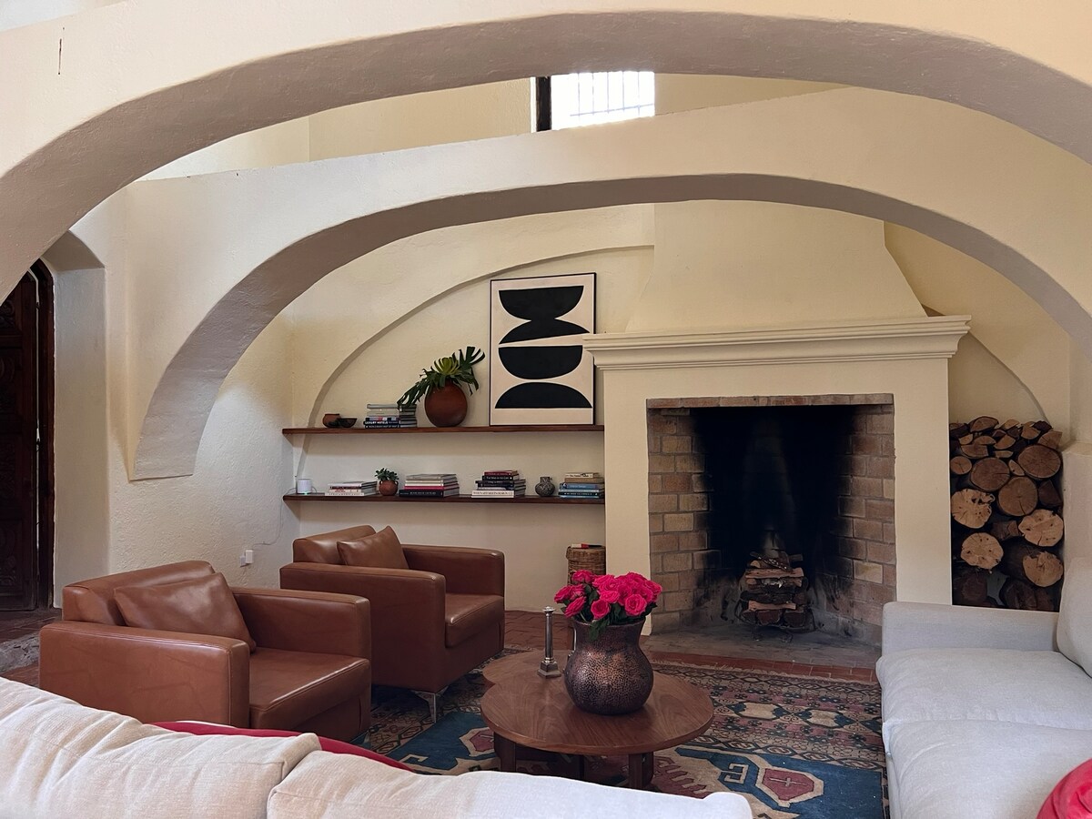 Nestled in the hills thirty minutes from San Miguel de Allende, Willow is a historic hacienda that has been converted into a beautiful bed and breakfast. Our main house suite is perfect for a couple or solo traveler. The room is equipped with a king-sized bed and a full bathroom with a balcony. You'll have access to the main living room with a fireplace, a dedicated workspace with Herman Miller chairs, and Starlink Internet access. If you like to cook, a fully-equipped kitchen is available.