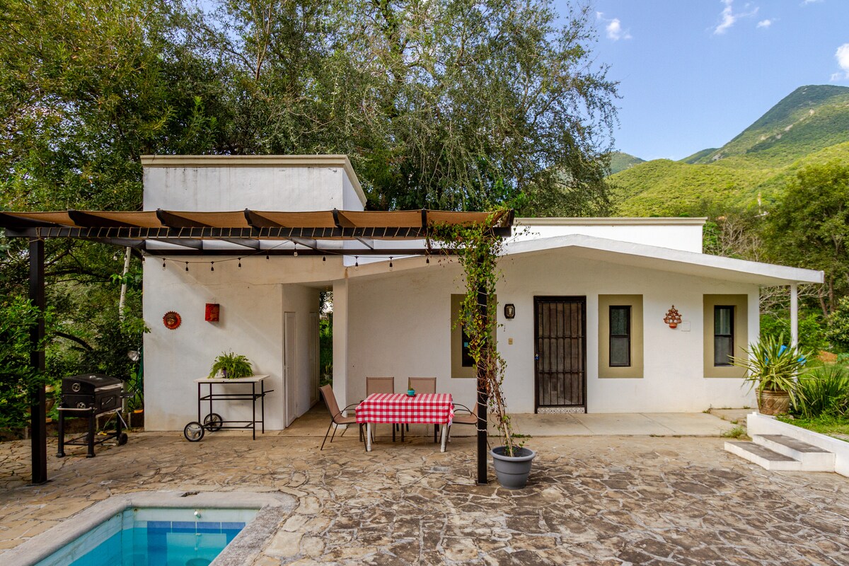Un encantador oasis de tranquilidad rodeado de naturaleza, a solo treinta minutos de Monterrey. Acogedora y pensada para regalarte momentos de paz, diversión y descanso. Perfecta para parejas, familias o grupos de hasta 8 personas. Con 🏊♂️ alberca 🪵 asador🌙 hamaca ✨ Vive la experiencia del campo con todas las comodidades que mereces. La mejor decisión 🌿¡Reserva hoy!