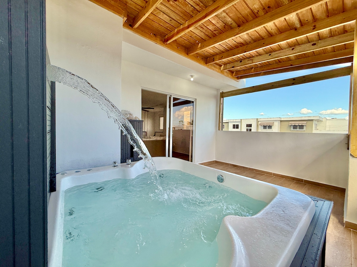 Веселитесь с семьей или друзьями в этом просторном доме на 7 человек! Приезжайте и наслаждайтесь комфортным пребыванием и предлагаемыми нами удобствами, такими как наше джакузи для 7 человек, большое патио с барбекю на углях, готовое к использованию, и 100% инстаграмный декор. Мы находимся недалеко от крупнейших сетевых супермаркетов в стране и менее чем в 15 минутах от центра города. 5 минут от американского посольства. 25 минут от колониальной зоны. 50 минут до аэропорта SDQ.