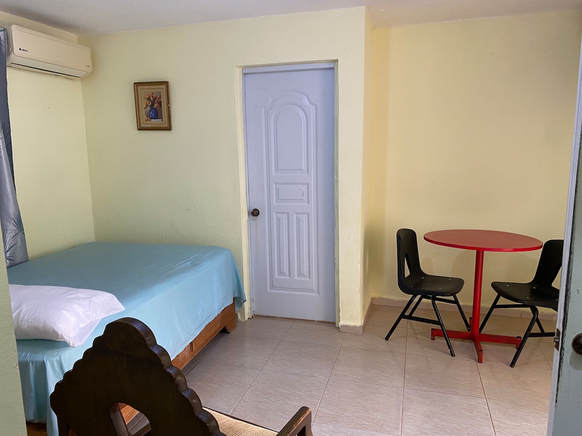 Вам больше не нужно покидать город, чтобы чувствовать себя в горах, это независимый гостевой дом с 1 кроватью и 1 ванной в закрытой резиденции с 10-метровым бассейном, которым пользуются хозяева. С фильтром питьевой воды Coway. Супермаркеты, кинотеатр, магазины и парикмахерская поблизости. В нескольких минутах от центра Санто-Доминго и в 1,8 км от американского посольства.