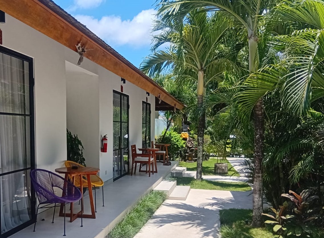 Добро пожаловать в Bajalo Cottage Canggu. Ощутите спокойную и безмятежную атмосферу, смешанную с великолепным садом. *Сбор Airbnb не взимается. Удобства: - двуспальная кровать размера King size. - Кондиционер - ванная комната под открытым небом +ванна. - терраса со стулом и столом; - общая кухня - Wi-Fi 75 Мбит/с, охватывающий всю территорию. Коттедж Bajalo расположен в районе Чангу. До пляжа и центра Чангу всего 5 минут на скутере.