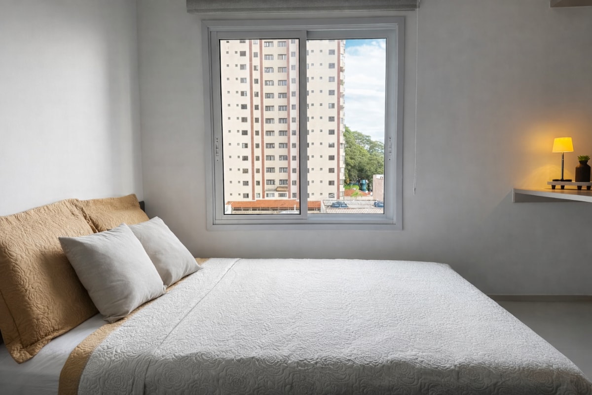 Апарт-отель Aconchegante с видом на закат. Очаровательный декор, полная структура и привилегированное расположение! В распоряжении гостей кондиционер, кофеварка, аэрофритюрница, двуспальная кровать размера Queen size, 2 телевизора со Smart TV и кабельными каналами, кухня, гостиная. 3-фазное освещение. Есть прачечная самообслуживания, ресторан, бассейн, сауна и 1 парковочное место. Рядом велосипедная дорожка, парк, рестораны, аптека, рынок, Kopenhagen, 4 км до торгового центра São Caetano. Идеально подходит для отдыха или работы с комфортом и безопасностью.