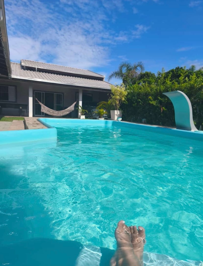 🌊 Only 40 meters from the sea! House located at Praia Grande – São Francisco do Sul, in the best area of the beach, close to Prainha, allowing you to enjoy two beaches without using the car. The house has 4 bedrooms (2 suites), plus a social bathroom, all with air conditioning. Comfortable living room with Wi-Fi, Smart TV, air conditioning, and ceiling fan. Outdoor area with pool and waterfall, barbecue area, front kiosk with hammock, garage, and beach items. 🐾 Pets are welcome with additional
