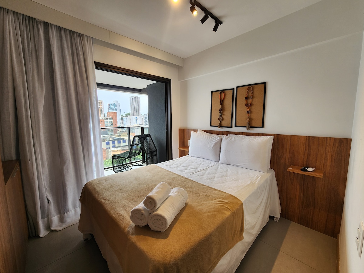 Лучшее место с потрясающим видом на море! Всего в 10 минутах ходьбы от пляжа и в 3 минутах от центра Арраяля. Рядом с улицей Мукуже, где находится вся ночная жизнь Арраяля. Лучшие рестораны и бары находятся менее чем в 5 минутах от площадки. Наслаждайтесь рассветом на удивительном море. Роскошный люкс, кровать размера «king-size», просторная ванная комната с ванной, мини-бар, кондиционер Split, 55-дюймовый телевизор и балкон. Cafe da manha включено, подается на вершине скалы с потрясающим видом на море!