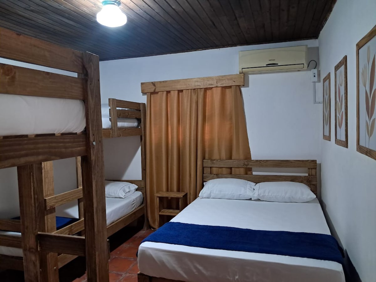 Отдельная семейная комната 1 отдельная спальня с 3 двуспальными кроватями, идеально подходит для семей. Общая ванная комната, кухня и гостиная с другими гостями. В доме есть: Камеры видеонаблюдения на улице. Wi-Fi. Кондиционер Бесплатный гараж ° Микроволновая печь; Банка с электроприводом Банные полотенца Туалетная бумага