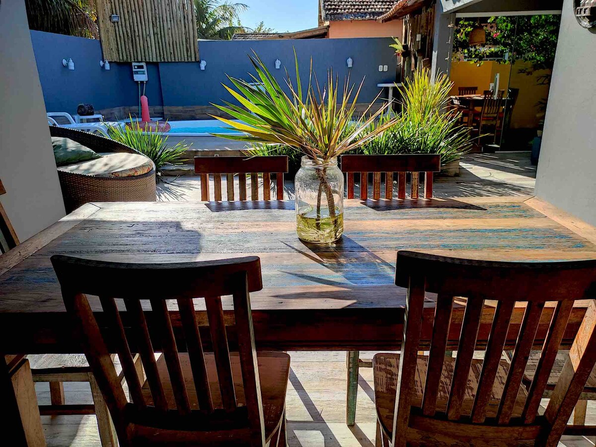 Добро пожаловать в наш семейный пляжный дом! Дом, где мы создаем воспоминания и особые моменты, которыми можно поделиться с вами! Наш дом - это убежище с бассейном, барбекю и множеством гамаков для отдыха. К услугам гостей 5 спален, 3 ванные комнаты и открытая площадка для 3 автомобилей. Мы находимся всего в 200 метрах от станции 3 пляжа Grussaí и в нескольких минутах от гастрономических полюсов, SESC и Avenida Liberdade, где расположены магазины и рестораны. Атмосфера, где можно с питомцами!