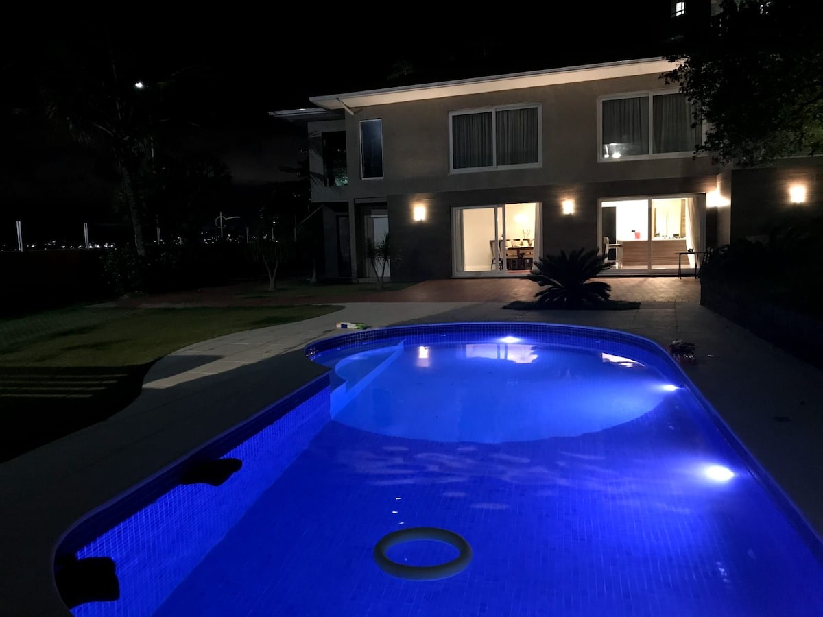CASA DE Eventos e Cerimonial da Grande Florianópolis Frente Mar 🌊 Проживание (минимум 3 ночи) или для мероприятия (однодневный день): свадьба, день рождения, корпорация и т. д. Этот дом выходит за рамки особого комфорта с джакузи с подогревом, бассейном, бунгало, кондиционером и телевизором 4K во всех комнатах и т. д. + 2 сапсерфинга и двухместный каяк PRO. Он находится в самой благородной части континента, где есть несколько Bares, бистро, всемирно известные рестораны, историческая площадь по соседству с Trapiche.
