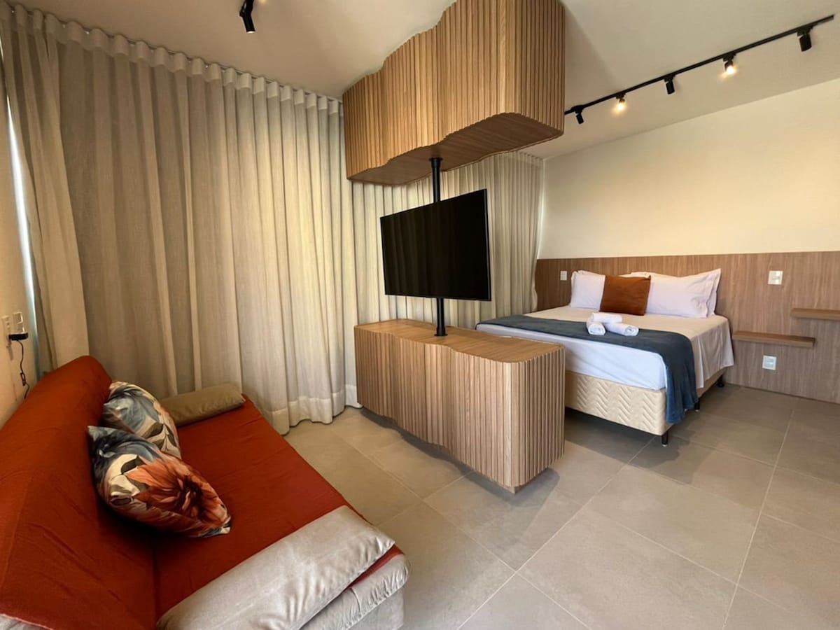 Элегантная студия в Unique с современным декором и дизайном с характерной отделкой, созданная для комфорта и функциональности. В распоряжении гостей застекленный балкон с принадлежностями для барбекю, полностью оборудованная кухня, диван-кровать, телевизор со Smart TV, кондиционер и уютная кровать размера Queen size. Ах, и с привилегированным видом на город. Идеально подходит для тех, кто ищет практичность, стиль и уютную обстановку, чтобы насладиться особыми моментами.