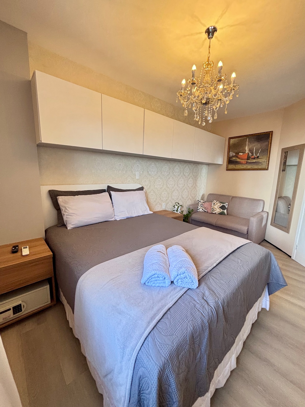 Одно из лучших мест в Сан-Луисе! Все виды услуг в нескольких метрах: японская еда, пиццерия, местная еда, прачечная, бары, рестораны, аптеки, удобства. Квартира находится на 8 этаже, с видом на Янсенскую лагуну, одну из городских почтовых открыток, на пляже Понта-да-Арея. Кровать размера Queen size, комната с кондиционером, телевизором Smart TV и ежедневной уборкой (не по воскресеньям). Внимательно ознакомьтесь с «Правилами дома» после подтверждения бронирования.