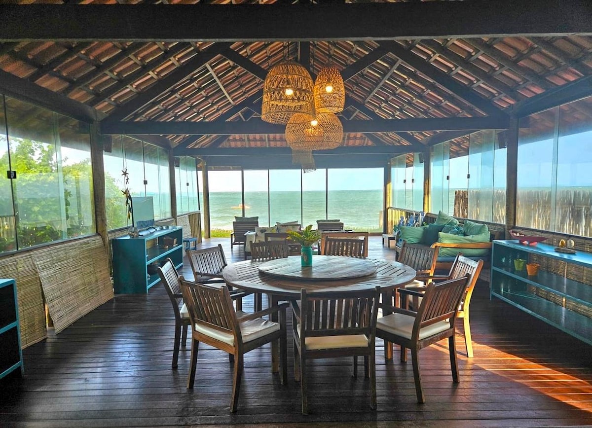 Вилла Casa Brisa Atlântica расположена у моря в 35 м от моря и имеет прямой доступ к пляжу Патачо, практически на песке, имеет современную архитектуру с одной спальней и общей ванной комнатой, гостиной с кухней и балконами с видом на гостиную и спальнями, которые идеально подходят для 5 человек. Крытый сад с душем на свежем воздухе. Мы предлагаем питание с профессиональным шеф-поваром и ежедневная уборка. Дома идеально подходят для отдыха пар, семей и больших групп (как и другие дома на территории).