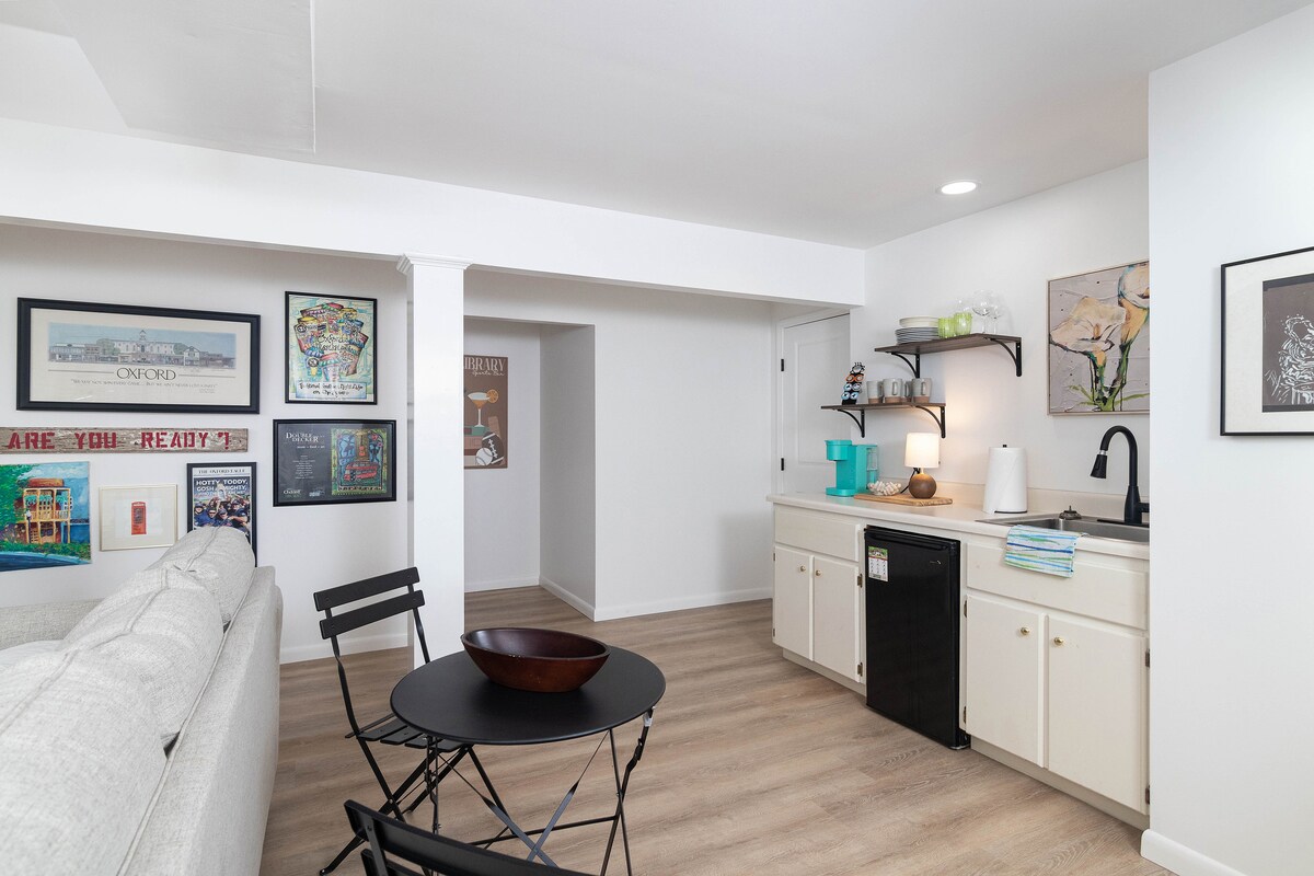 Это уютное жилье площадью 550 кв. футов расположено чуть более чем в миле от оживленной площади в центре города. К услугам гостей двуспальная кровать размера Queen size, большой стул, который раскладывается в двуспальную кровать, мини-кухня, ванная с туалетом, смарт-телевизор, Wi-Fi, стиральная машина/сушилка и патио. Удобное расположение в 2,3 мили от кампуса Ole Miss с парковкой. Идеально подходит для знакомства с очарованием Оксфорда! *В течение учебного года бронирование на выходные минимум на две ночи*