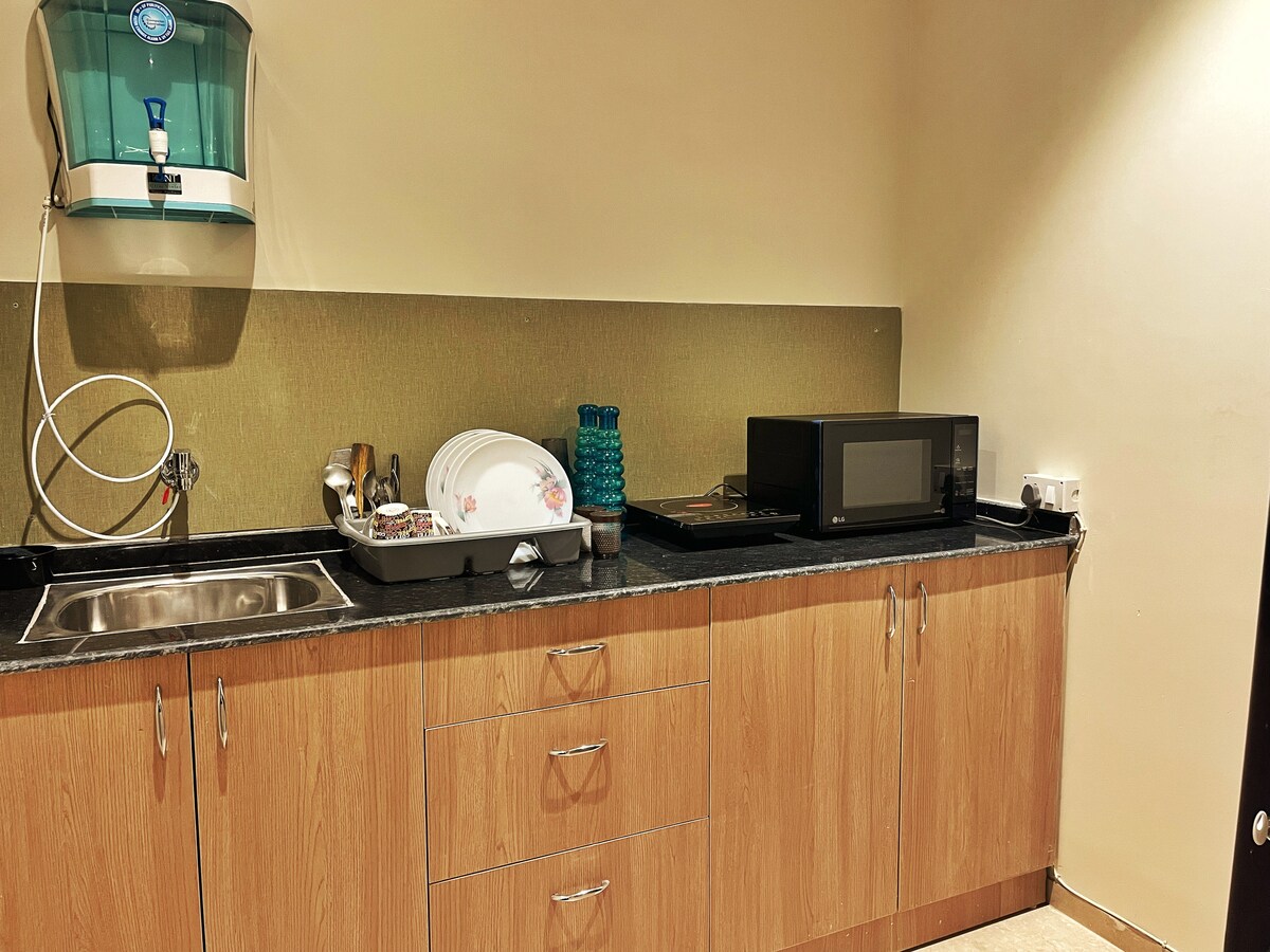 Апартаменты с обслуживанием 1 BHK в секторе 28 Гургаона, идеально подходят для краткосрочного/долгосрочного проживания. До станции метро DLF Phase 1 можно дойти пешком, 1,5 км до рынка Sikandarpur & Galleria, 3 минуты езды до Cyber City. Мы приветствуем гостей из-за пределов Индии. Максимум 2 посетителя с 6:00 до 21:00 (после 21:00 посетители не допускаются). Раннее прибытие возможно при наличии свободных дат и за дополнительную плату в размере 500 рупий, поздний выезд также возможен за дополнительную плату в размере 500 рупий за каждые 3 часа.