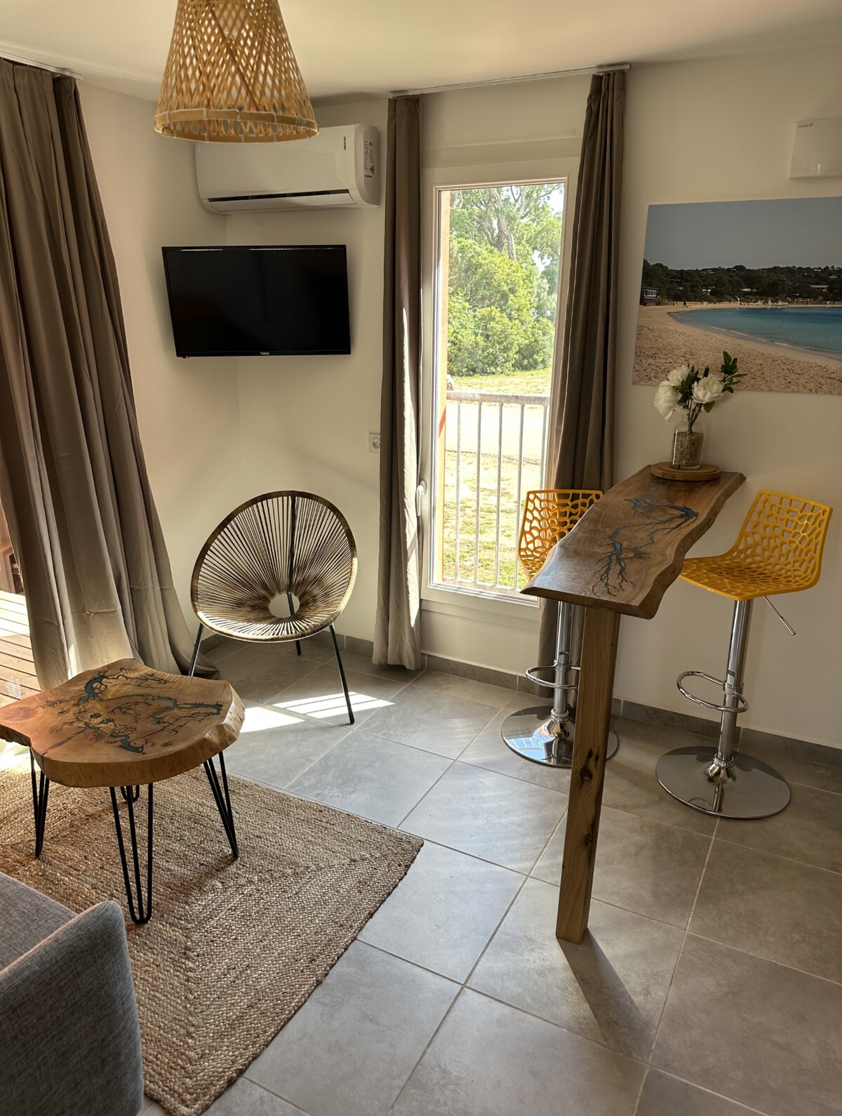 Тихая квартира предлагает расслабляющий отдых для всей семьи в безопасной гостиничной резиденции с 3 бассейнами, баром, рестораном , прокатом велосипедов, вариантом Pti dej. (8,50 евро) прачечная (5 9 кг) Супероборудованное жилье (утюг и гладильная доска, сушилка для белья, фен, тостер, цитрусовый пресс, Nespresso, планча, подключенный телевизор, высококачественная посуда, гардеробная...) и элегантное. 4 минуты от пляжей: Кала-Росса и Сен-Сиприен. идеальное расположение для знакомства с Южной Корсикой