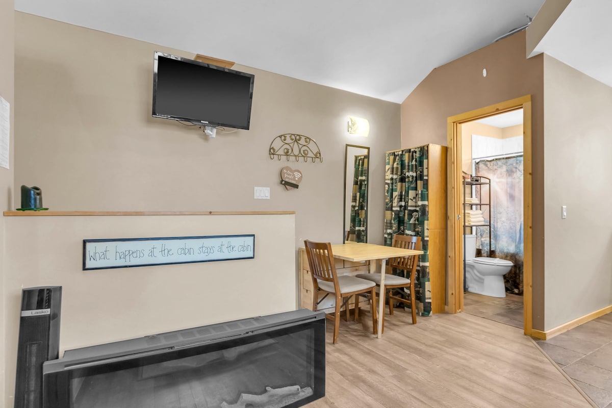 Насладитесь стильными впечатлениями в этом жилье в центре города. 4 комфортабельных спальных места (двуспальная кровать размера Queen size, один раскладной диван размера Queen size, двуспальный двуспальный надувной матрас), 55-дюймовый смарт-телевизор/бесплатный Wi-Fi/телевизор (все спортивные фильмы/Netflix), звуковая панель Bluetooth (гостиная и ванная комната), настольные игры, дровяной камин,барбекю. Лыжи на лыжах/ паб/ресторан в пешей доступности, красивые пешие прогулки, горный велосипед, квадроциклы, отличные виды и озера поблизости, бассейн(летний сезон)/гидромассажная ванна/сауна (все круглые), комната с удобствами и игровая комната.