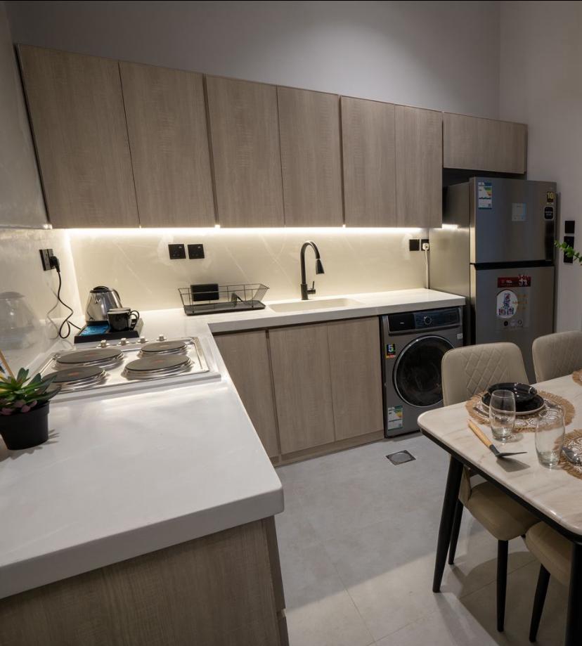 Элегантная квартира с гостиничными услугами — Услуги гостеприимства: добавьте чай, кофе, сахар, воду. — Медицинские услуги: шампунь, сальпер, мыло, салфетки, рыцари и паста. — Бесплатный интернет. - Самостоятельный вход. - Частная парковка. — Аккаунт Shahid. - Кухня. Рядом супермаркет, ресторан, кофейня, прачечная, несколько метров. Диръия находится примерно в 8 км, а бульвар — в 10 км. Станция метро 2A2 находится примерно в 14 минутах, а автобусная станция Irqa 501 — примерно в 10 минутах.
