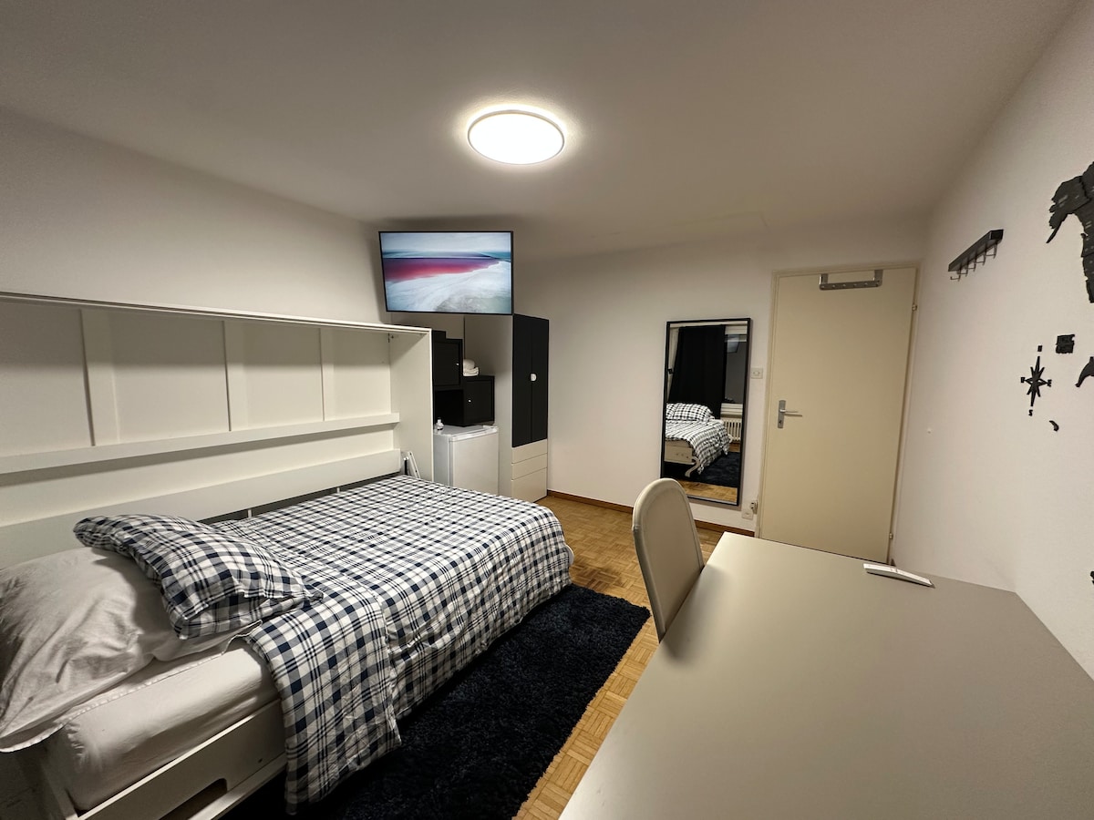 Отдохните в этом тихом доме на холмах Лозанны. Ищете временное жилье? Мы предлагаем чистую, функциональную комнату с рабочим местом и балконом в нашем доме, расположенном на спокойных холмах Лозанны. Независимо от того, приезжаете ли вы по работе, учитесь или просто исследуете окрестности, наш дом обеспечивает идеальный баланс простоты и удобства. Наш дом расположен недалеко от Лозанны и красивого озера Совбелен и идеально подходит как для среднего, так и для ночного пребывания.