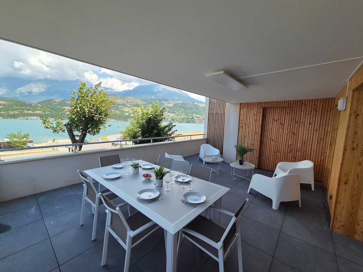 Терраса на берегу озера, вид 180°, 2-комнатная квартира