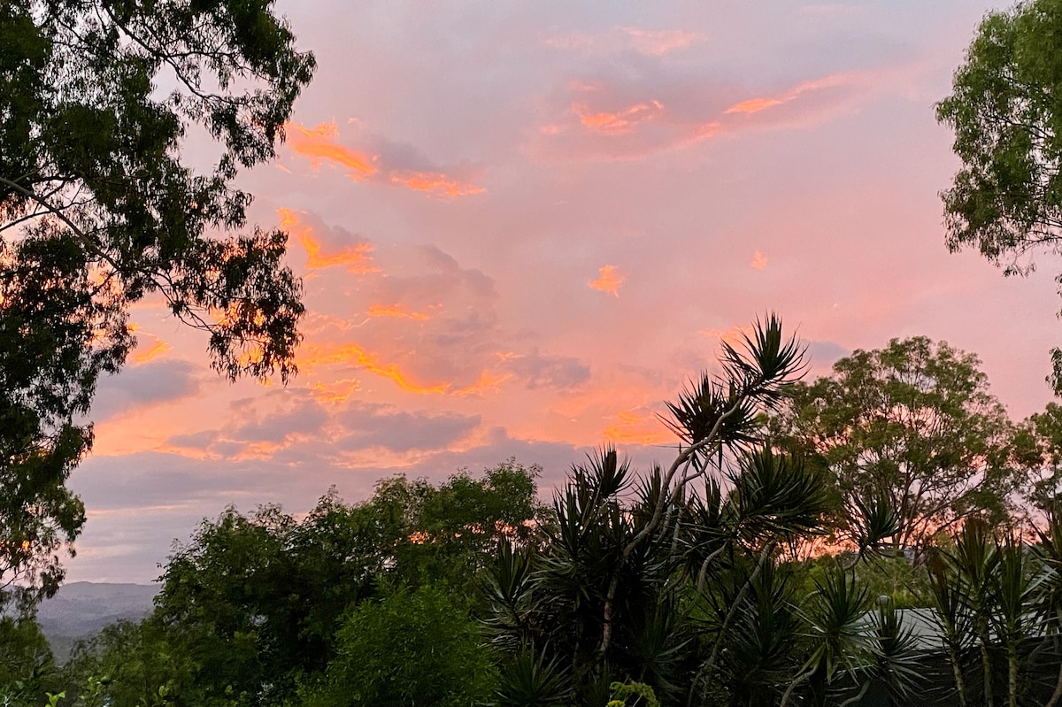 Романтический уединение и расслабление, понаблюдайте за удивительными закатами Расслабьтесь в безупречном деревянном домике, построенном на собственной полностью огороженной территории. Отдельная парковка. Познакомьтесь с моими 4 коровами и 2 овцами Посидите и расслабьтесь на террасе и насладитесь спокойствием с вашим любимым напитком или согрейтесь перед бревенчатым огнем звездная прогулка по ночному небу 7 км от исторического Калбара 15 минут до Буны, 20 минут до плотин. 50 минут до Indooroopilly. 90 минут до Голд-Коста. нет Wi-Fi, но очень сильная зона 4/5 г